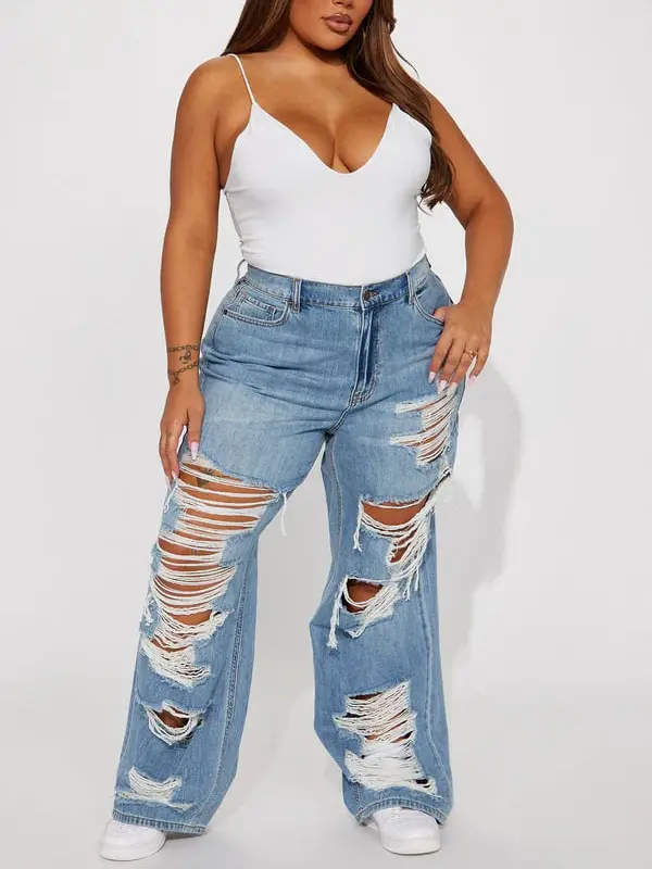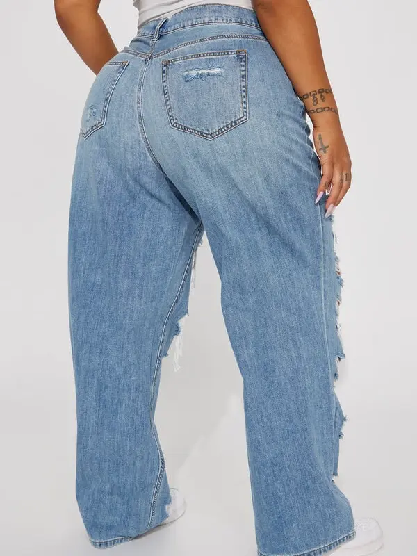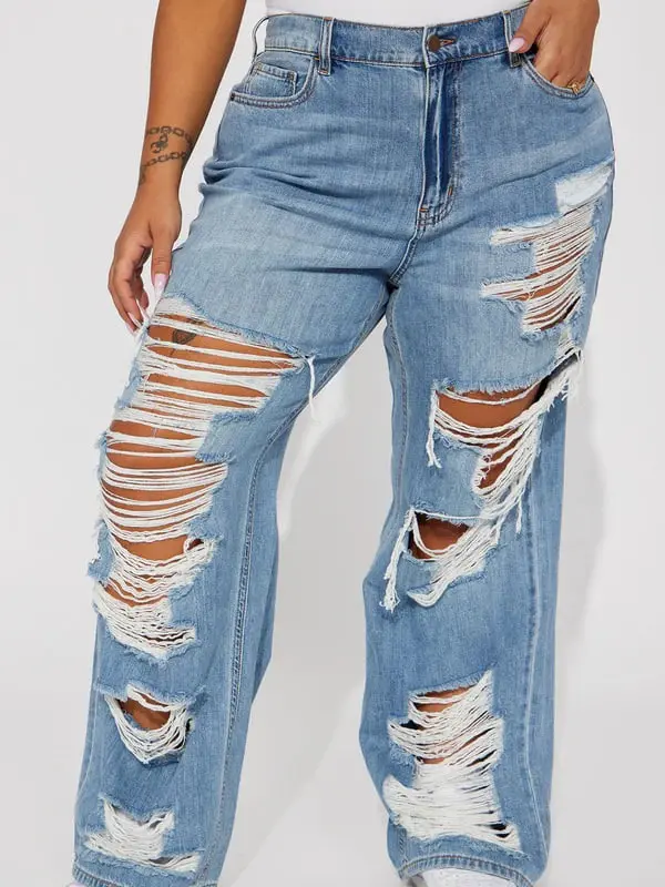 Sydney Shredded Non Stretch Loose Jeans - Medium Wash