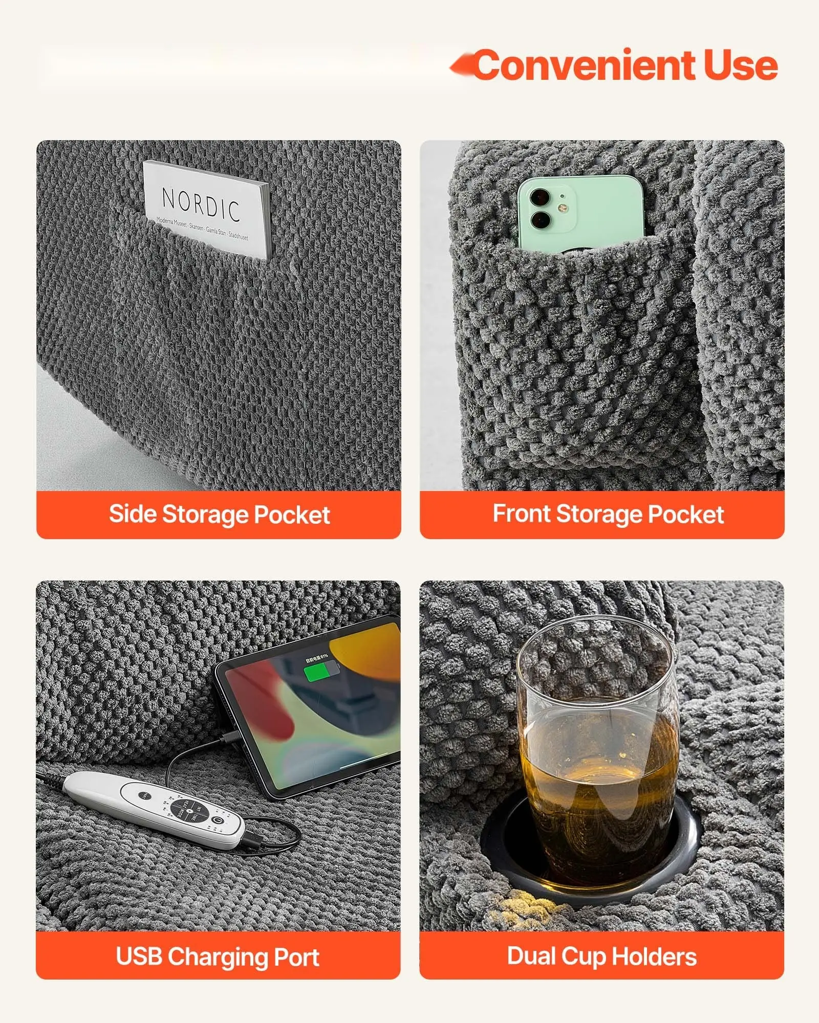 ·Thoughtful Features: This recliner loveseat includes USB ports, side/front pockets for storage, and two cup holders, making it ideal for relaxation and convenience