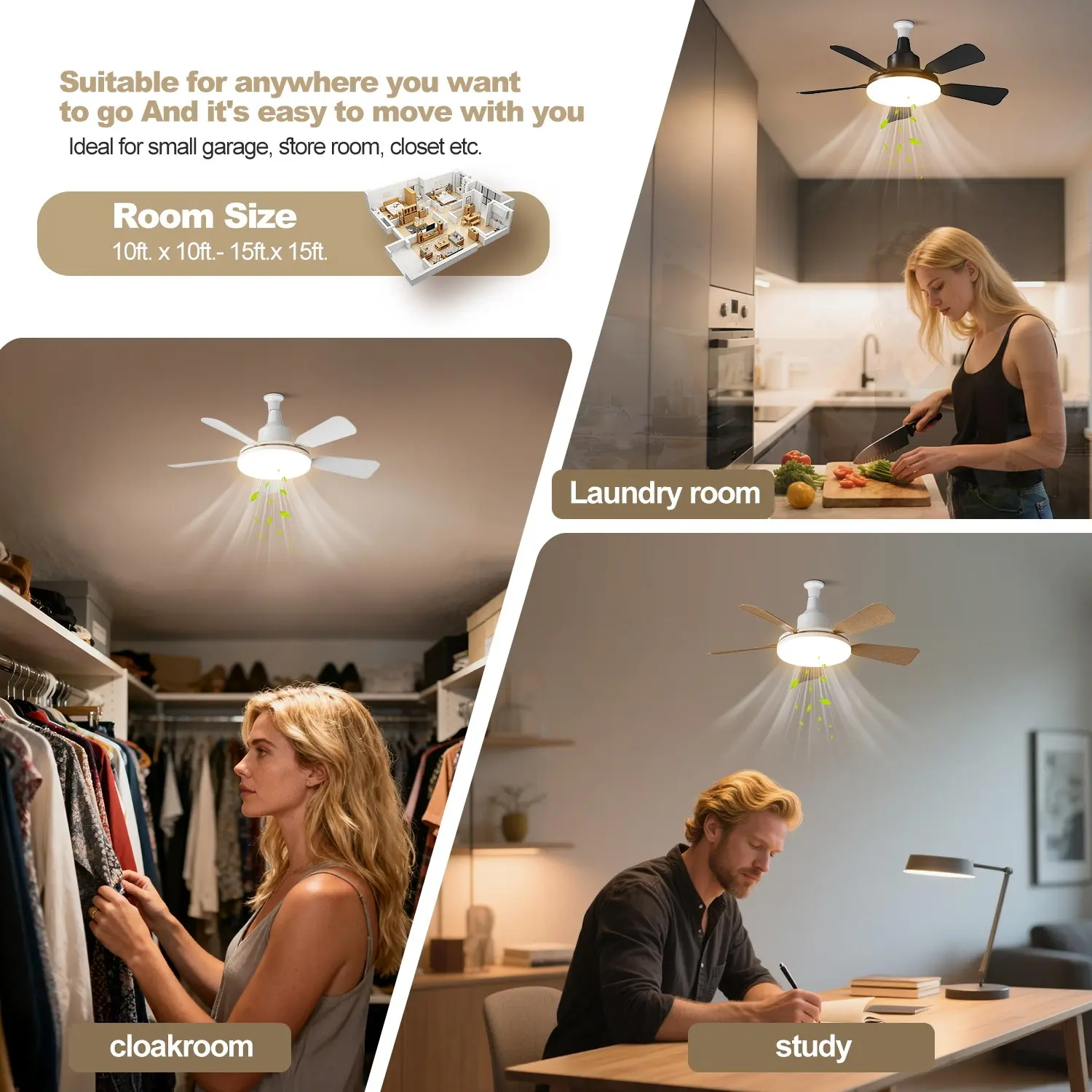 24-Inch Compact Two-In-One Fan Light, Adjustable Brightness, Timer Function, Three Speed Settings, Ideal for Small Living Rooms, Dining Rooms, Workspaces, Bedrooms
