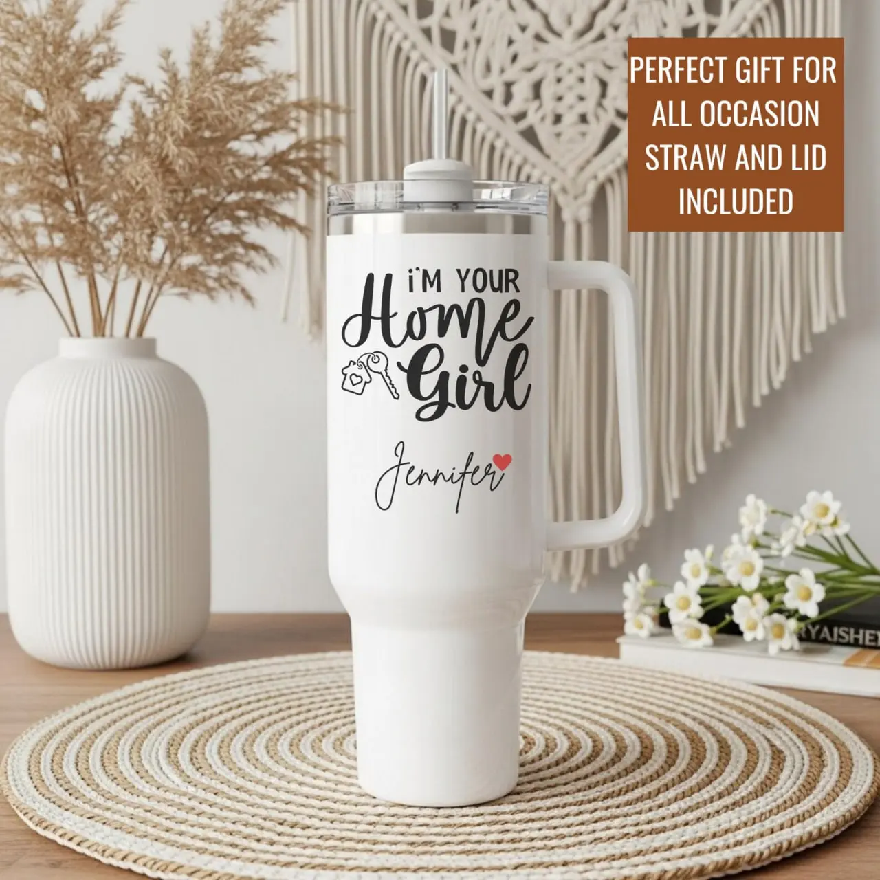 Custom Tumbler, Stainless Steel Cup With Straw, Custom Handle 40oz Tumbler, Gift For Her, Home Girl Tumbler with Handle