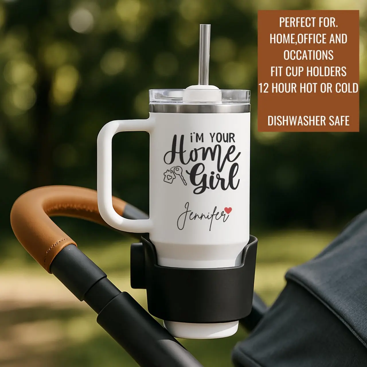 This tumbler is perfect for daily use at home. Its custom handle adds a personal touch, making it a thoughtful gift. Whether for herself or a loved one, this tumbler is a practical and stylish choice. Enjoy your drinks in style with this custom tumbler.