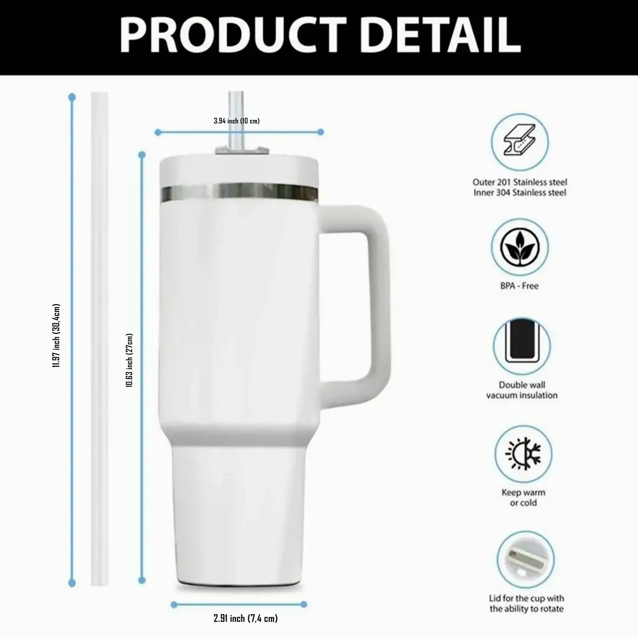 The "Magic" Lid: 3-way rotating cover – straw opening, wide mouth for chugging, and full-cover top to prevent spills.