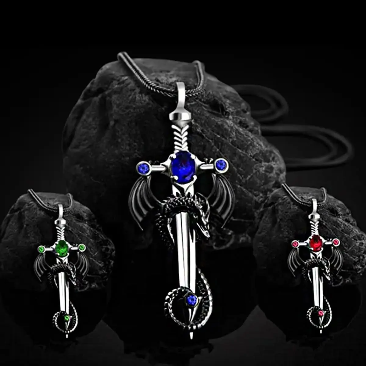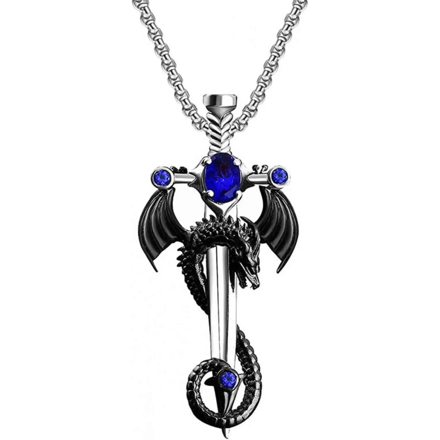 Gothic Sword Dragon Necklace Vintage Dragon Wrapped Sword Cross Pendant Necklace Punk Zircon Dragon Pendant Necklace Halloween Dark Gothic Jewelry for Men Women