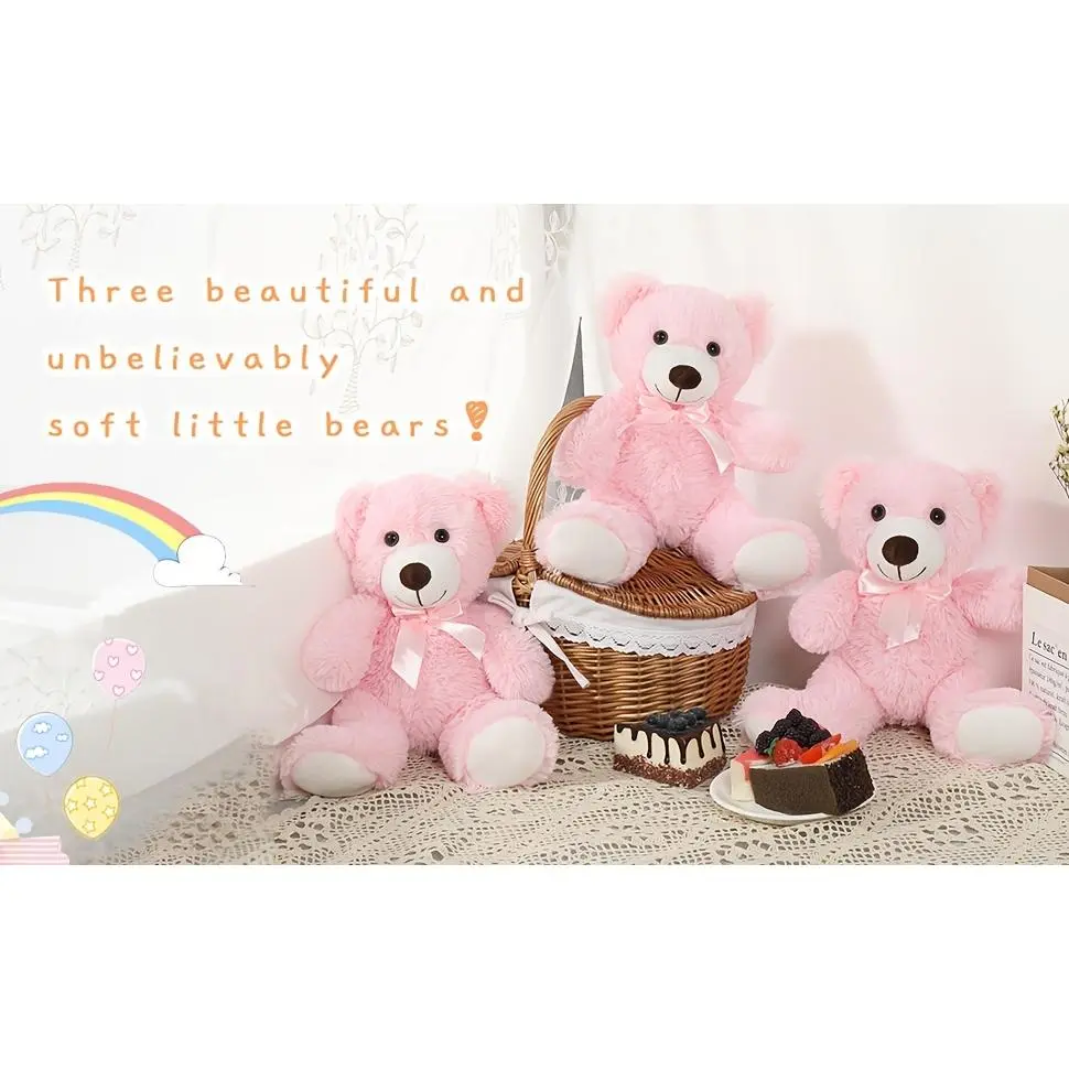 Pink Mini Teddy Bear Plush Toys, Teddy Bear Themed Baby Party Decorations, Ideal Plush Gifts for Kids, Perfect Christmas & Valentine's Day Gifts for Girlfriends