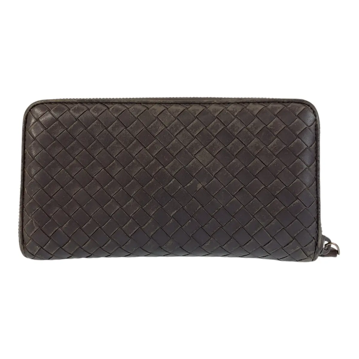 Pre-owned Bottega Veneta Calfskin Small Leather Goods Intrecciato Leather Long Wallet