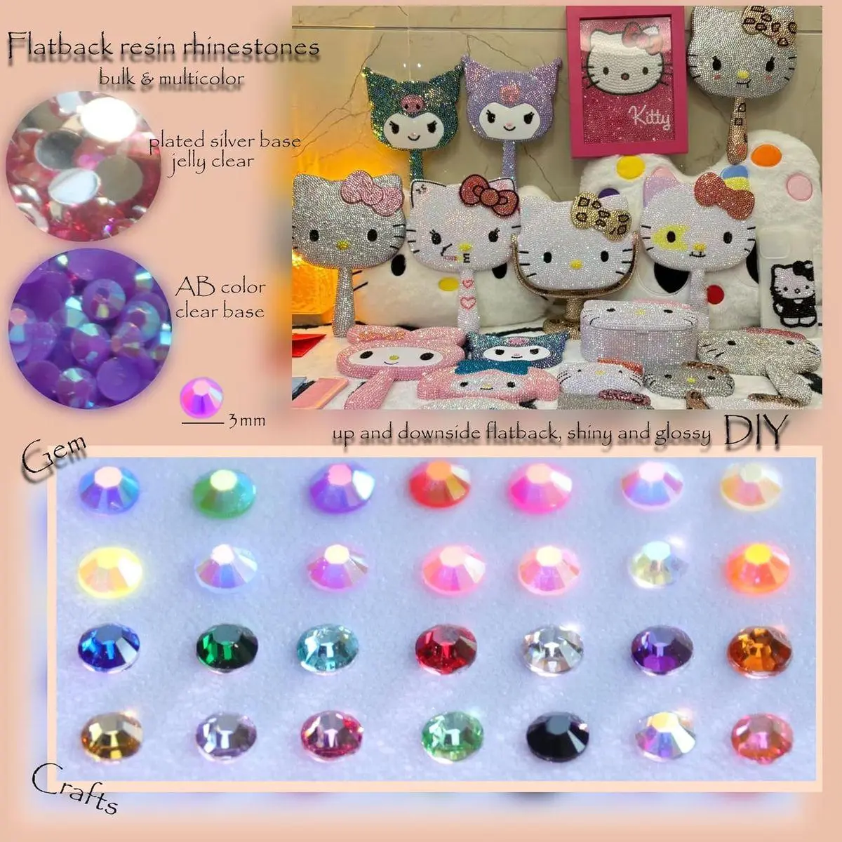 Diamantes de cristal para decorar --- These sparkling iridescent resin rhinestones are perfect for creating dazzling looks. Use them for bedazzling DIY crafts like shoes, tumblers, mugs, bottles, phone cases, popsockets, scrapbooks, photo frames, diamond paintings, greeting cards, bags, glasses, guitars, keychains, hats, masks, hair clips, bracelets, wristbands, clothing, clothes, wedding dresses or nail art and more. Apply it to what you want to bling!