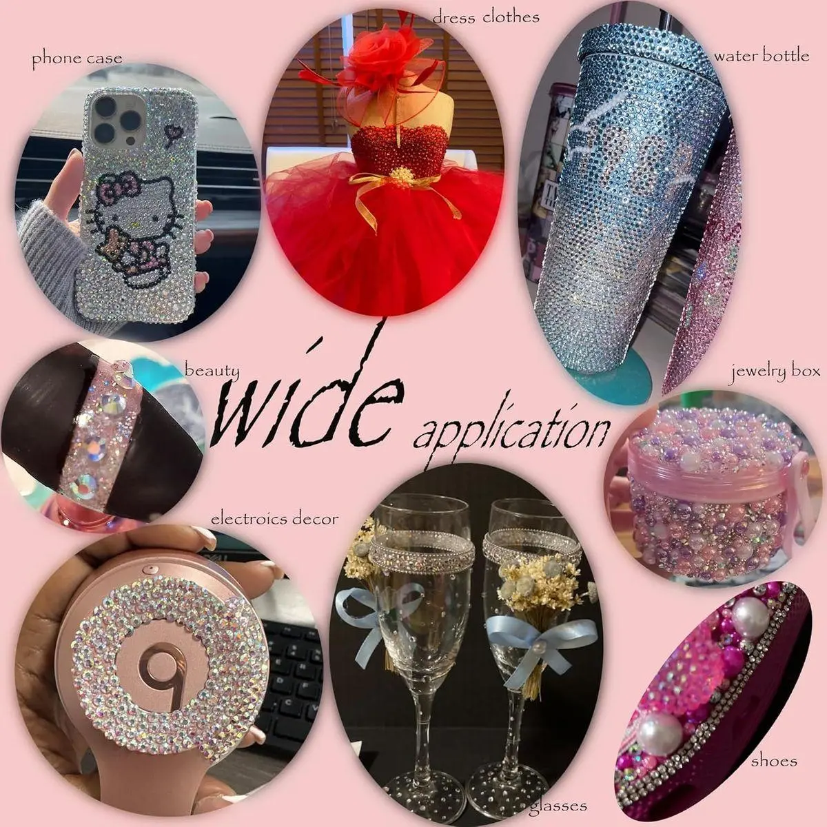 Bedazzle kit with rhinestones for making jewelry--A sufficient amount of badazzle resin gems are suitable for paving large area designs such as diamond paintings or cups. By choosing resin rhinestones with similar or contrasting colors, you can create color-coordinated or highly contrasting works, such as phone cases with gradient effect or colourful festival decorations