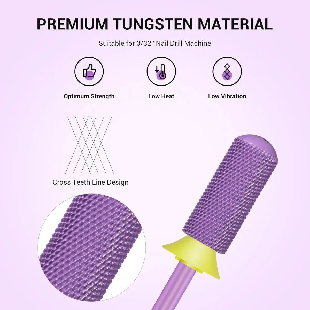Small Barrel Smooth Top Carbide Nail Drill Bits | Cross Cut | Color: Purple | Grit: Extra Fine | Shank Size: 3/32'' | Two-Way Rotation.