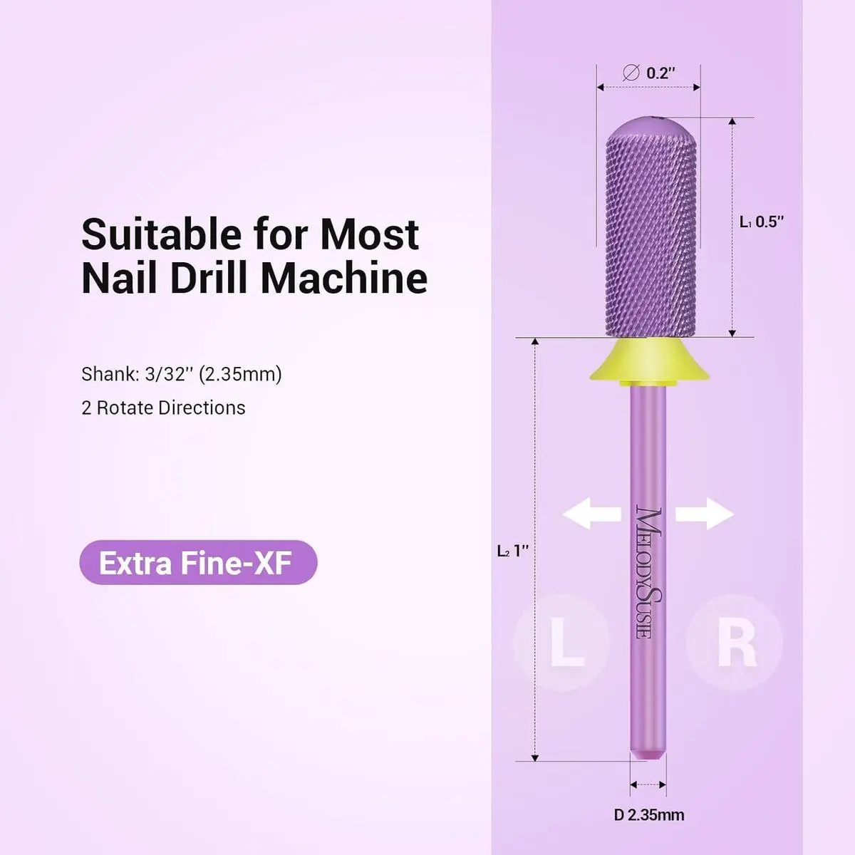 Professional Nail Drill Bits: Made of the hardest YG6X carbide tungsten material, this high-precision machining nail bit comes with excellent heat dissipation, low vibration, low noise, and hard-wearing features. Fast to remove and shorten acrylic nails, dip powder, poly gel, and hard gel nails, and help for backfill cutting and creating a sharp c-curve.