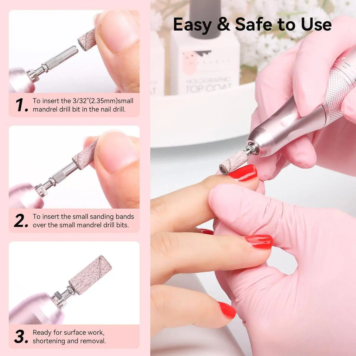 Quality Material:These nail art small bands in 4 colors are made of quality sand band with high hardness, durable and won't fall apart; the grinding head bits are made of quality stainless steel material, with good durability, stable and easy to insert into the bits and stay steadily