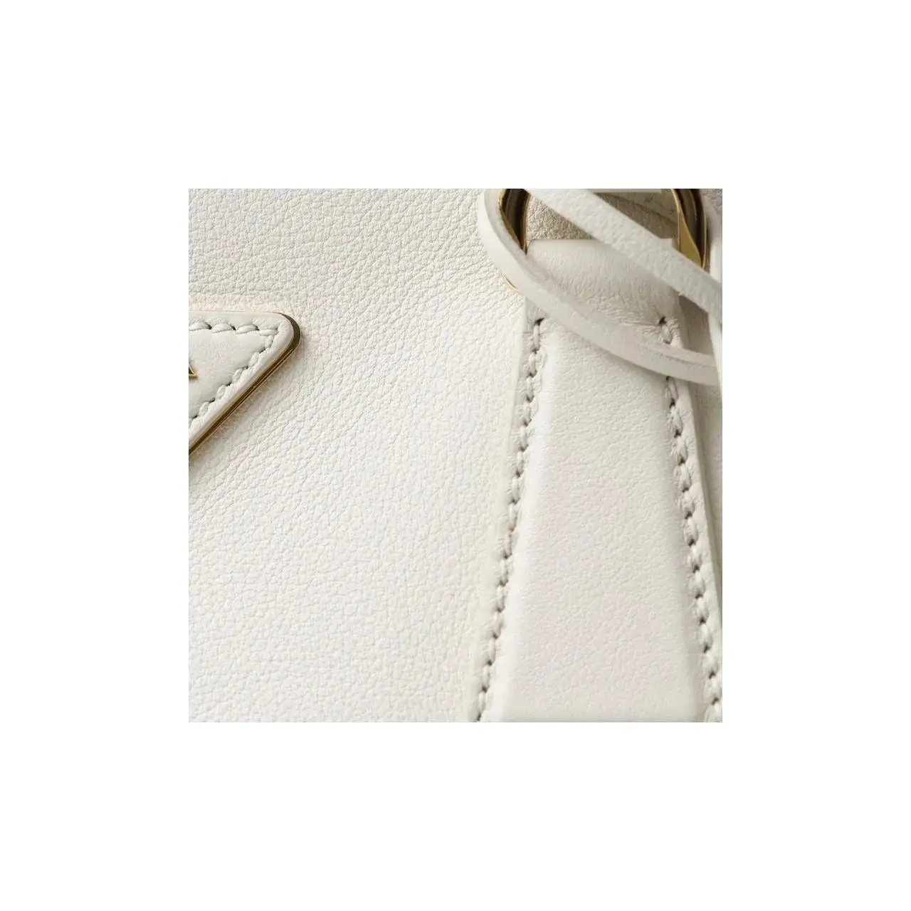 Pre-owned PRADA LEATHER Clutches & Wristlets Galleria Large White Shoulder Bag with Detachable Adjustable Strap Metal Logo Clutches & Wristlets