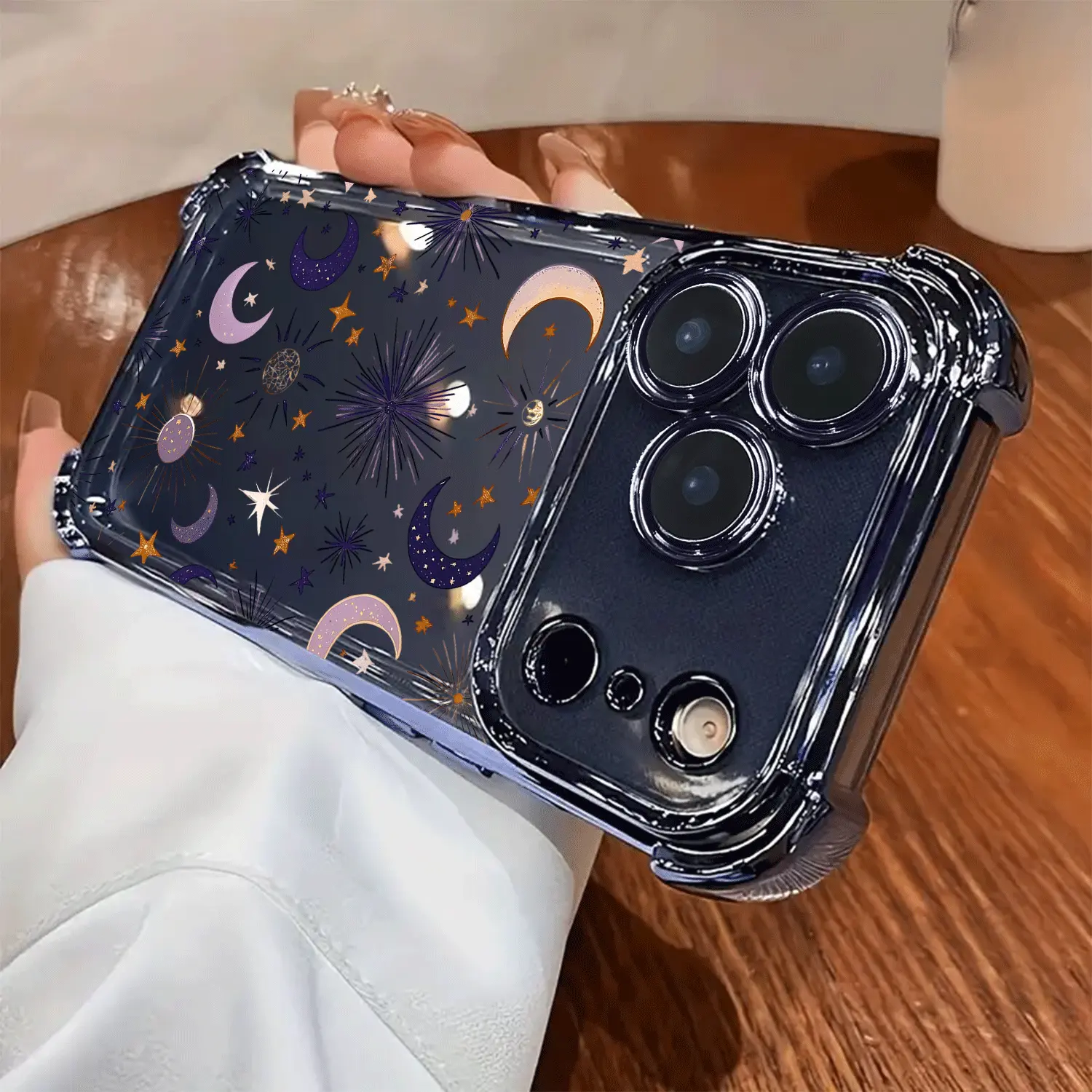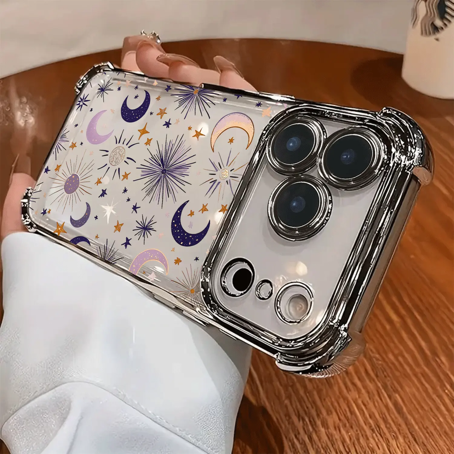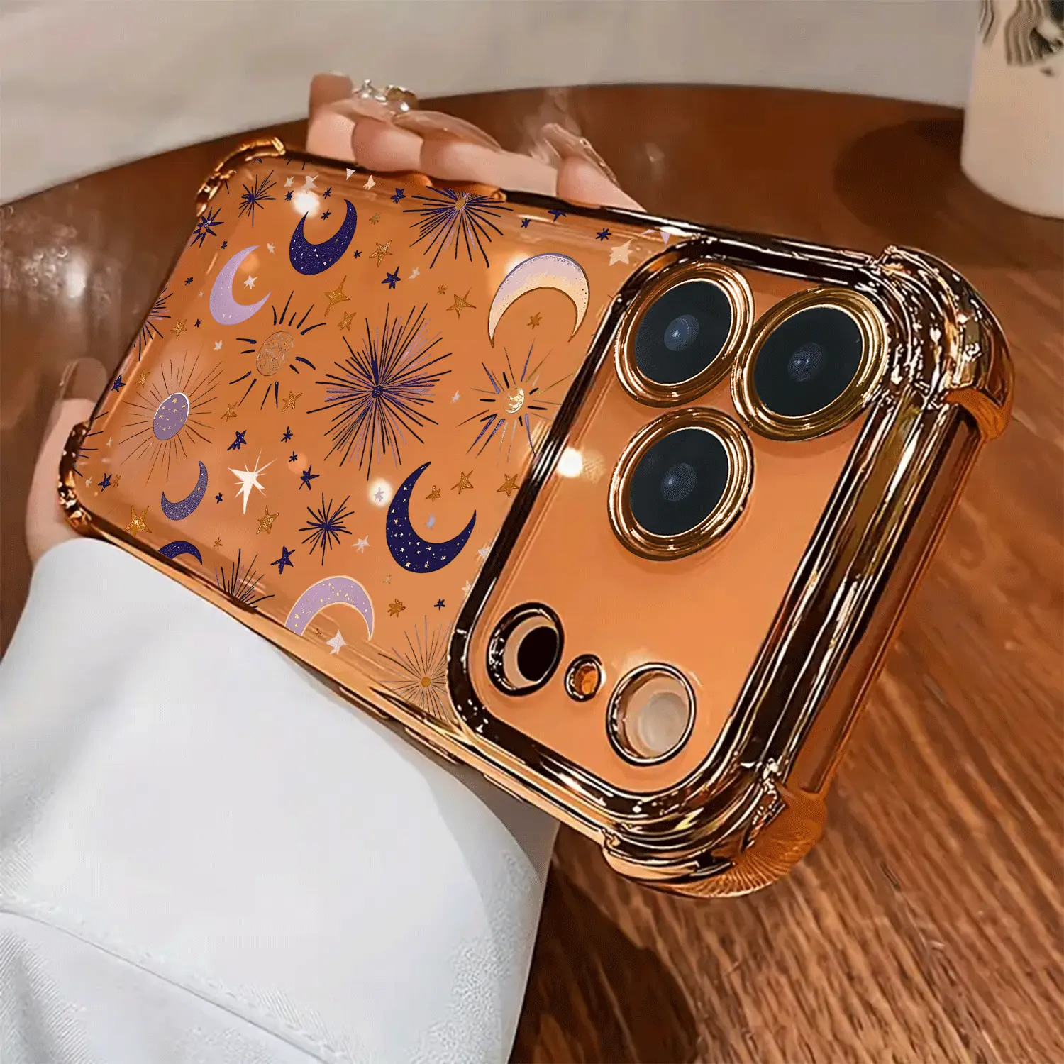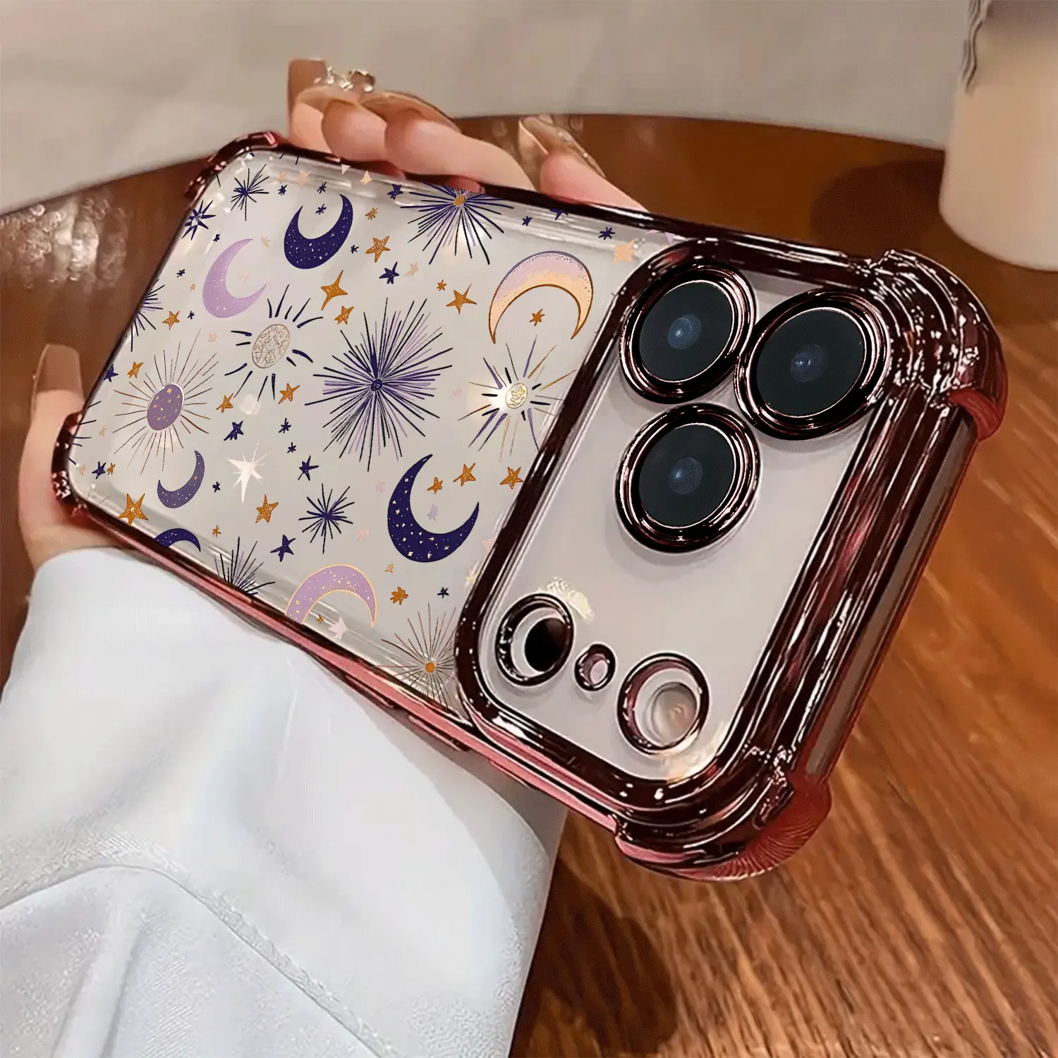 Phone Case: A Vintage Sun and Moon Pattern Electroplated Transparent Drop-proof Soft Full-coverage TPU Phone Case Suitable for a variety of iPhone and samsung models, from Iphone 15,17 series to Iphone 11 series