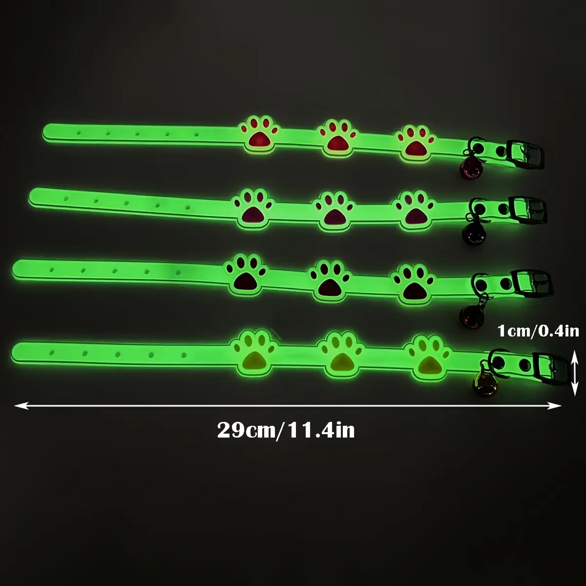 5. 1pc Glowing Collar for Dogs & Cats with Bell - Luminous Night Safety Collar, Adjustable Anti-Loss Safety Device, Paw Print Suitable for Small Pets, Bell Alert System for Nighttime Walks, Random Color Collar for Dog and Cat Leash Gear