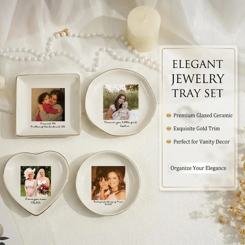 💕Give your memories a beautiful place to rest. This isn't just a jewelry dish; it's a custom-crafted heirloom, designed by you. We transform your most cherished photograph and message into a timeless, functional piece of art, perfect for holding your most valued treasures—both the ones you wear and the ones you hold in your heart.