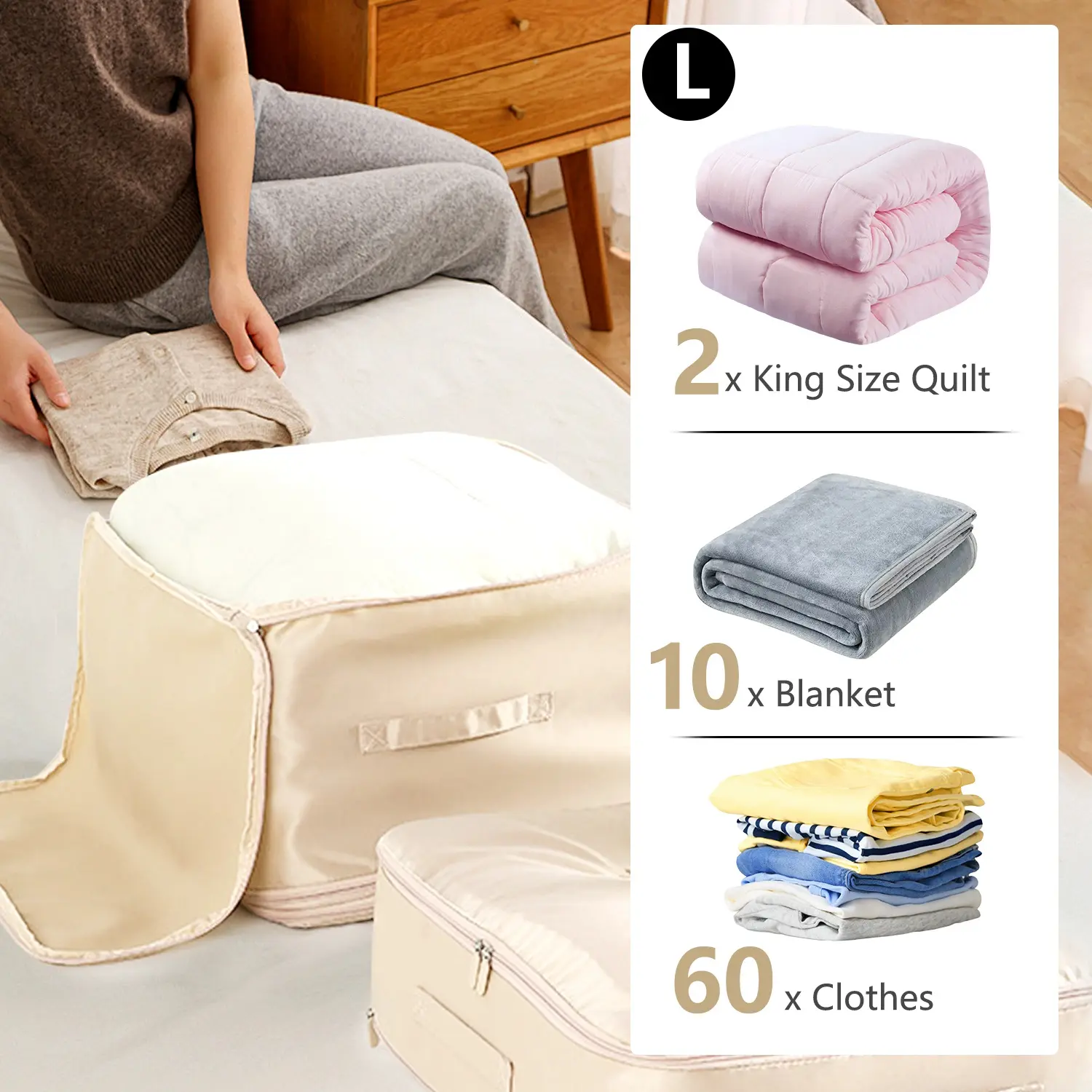 ·Large (L): Massive capacity! Fits 2 heavy winter duvets or up to 60 pieces of clothing.Compressed Height: 9.8" - 23.6"