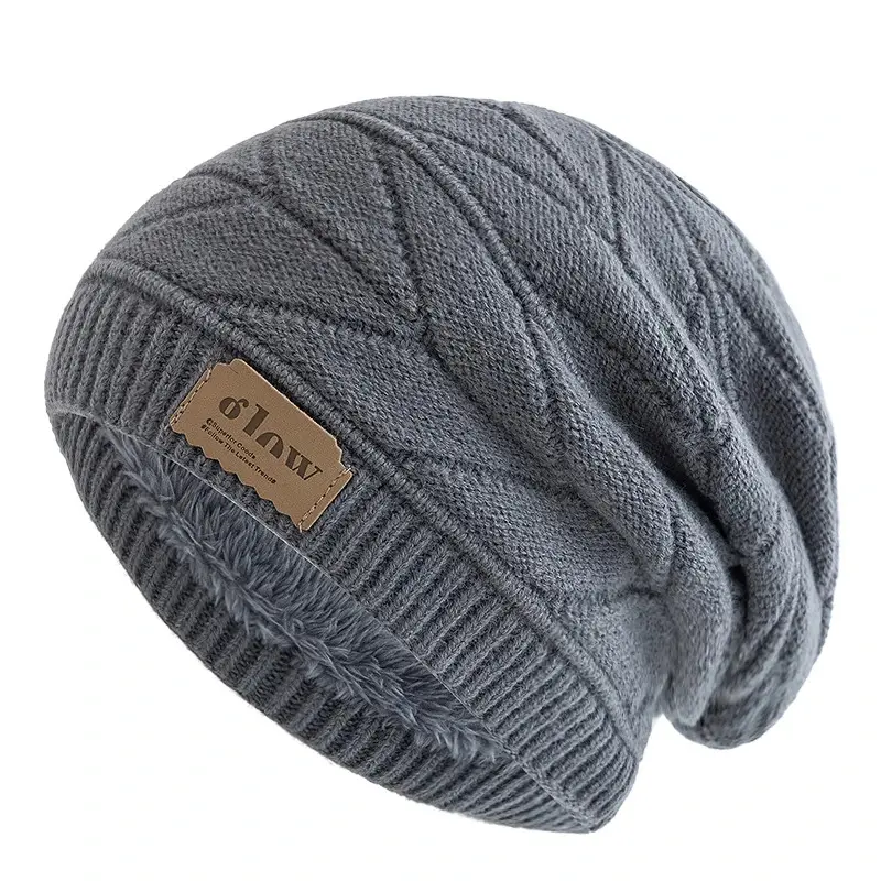 New Unisex Beanie Hats For Men & Women Outdoor Ski Sports Winter Hat Letter Label Decor Plush Fur Lined Warm Knitted Hat