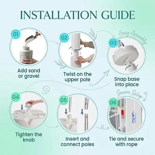 Made with UV-resistant, chlorine-proof PP base and rust-resistant aluminum pole.