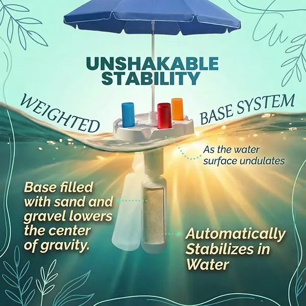 Built-in base keeps it floating, with cup holders for drinks, phone, and essentials—everything within reach while you relax.