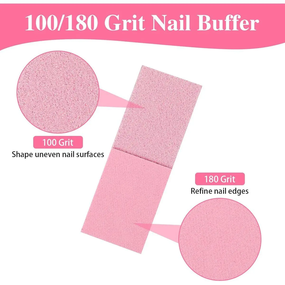 Double-Sided Emery Boards 100/180 Grit: The 100-grit coarse grit is used to shape and smooth uneven nail surfaces, while the 180-grit fine grit is used to refine edges and prepare for polishing or manicures. The nail filer is reusable