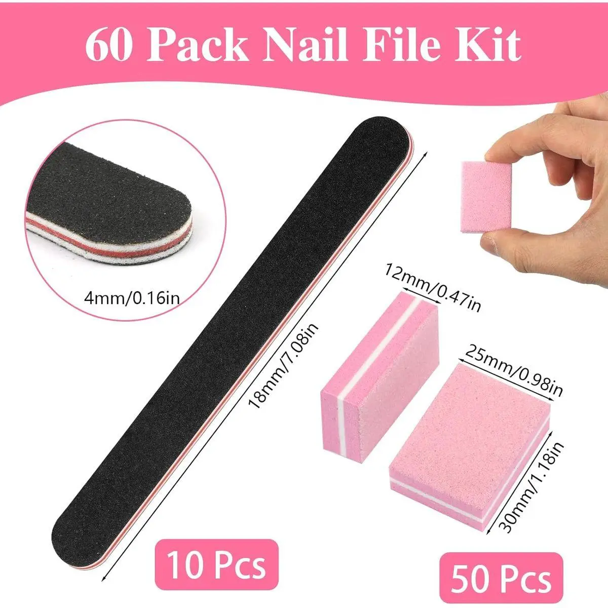 60 PCS Nail File and Buffer Set: This 2-in-1 nail files and buffers set includes 50 mini buffer block nail files and 10 nail files. Compact and portable, it easily fits into a handbag or makeup bag, allowing for convenient nail care anytime, anywhere