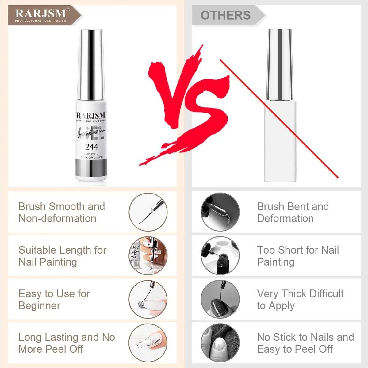 METALLIC GEL LINER 2PCS SET:Metallic Silver and Bronze Gold is the base color of nail manicure decoration, especially for nail art manicures. It not only creates a gorgeous momentum for your nails. The minimalist approach to the manicure design is the silver glitter line, so this metallic silver nail art gel is your essential one