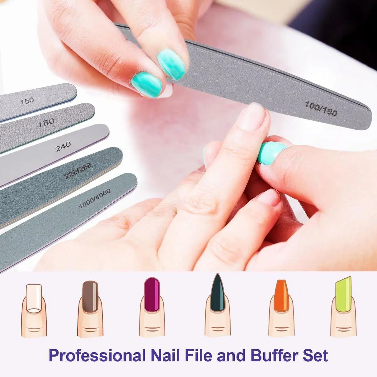 Upgraded Materials for Durable and Precise Nail Care: Expertly crafted with top-quality materials of emery board and sandpaper, these nail files and buffers are built to last and deliver precise results as you expected. Each nail file in the nail filer and buffer set with different grit provides you a comfortable nail care experience. Whether you're a seasoned nail technician or a beginner, our nail file and buffer set consistently deliver salon-quality results.