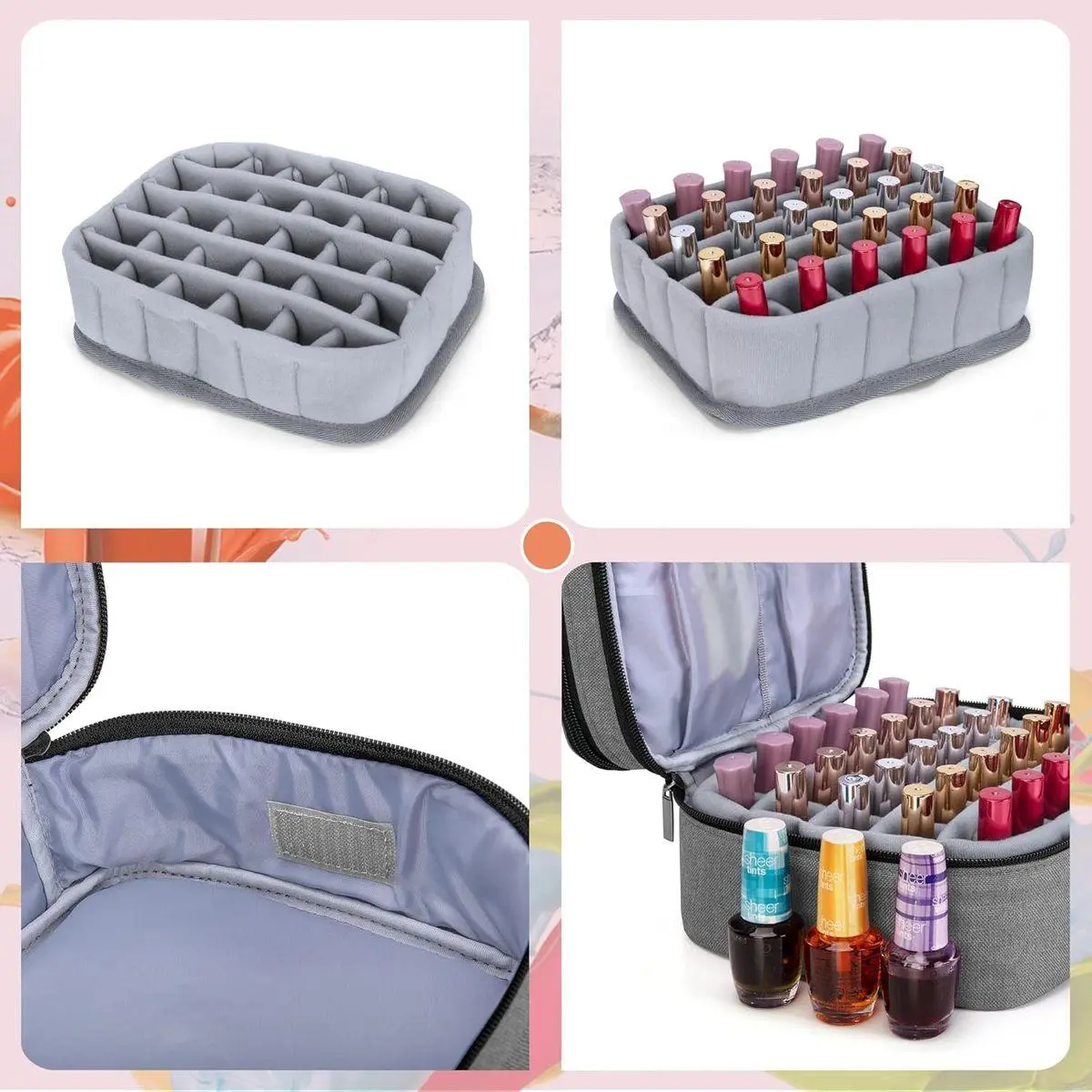 The bottle dividers are flexible and detachable, convenient for storing various specifications of bottles and easy for daily cleaning. The handle on top ensures that the nail polish bottles are being carried evenly and upright.