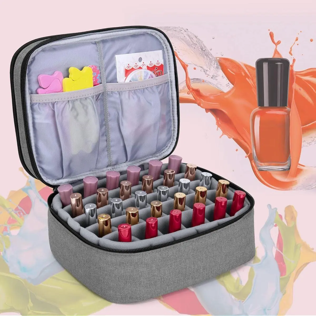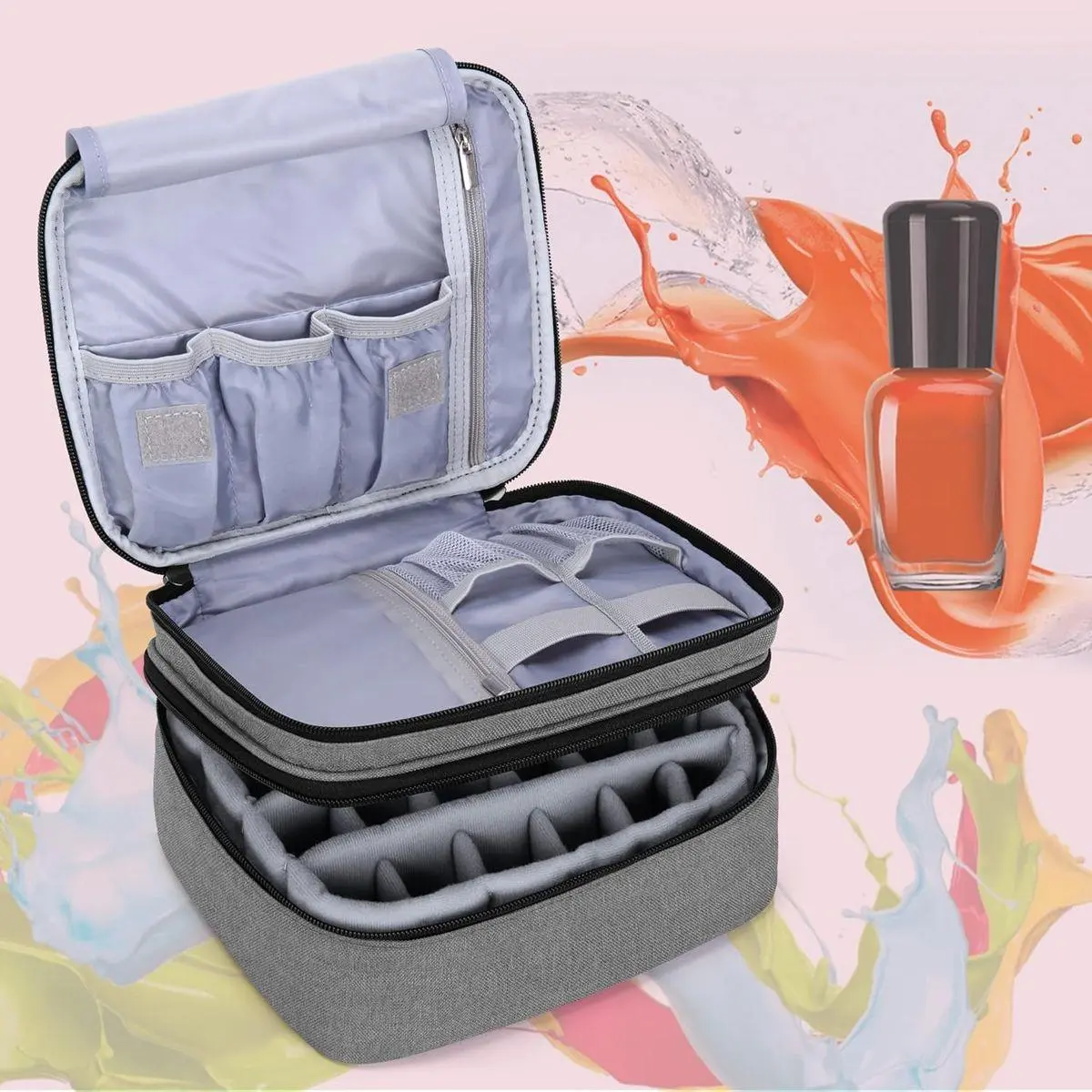 LUXJA Nail Polish Carrying Case - Holds 30 Bottles (15ml - 0.5 fl.oz), Double-layer Organizer for Nail Polish and Manicure Set, Gray (Bag Only)