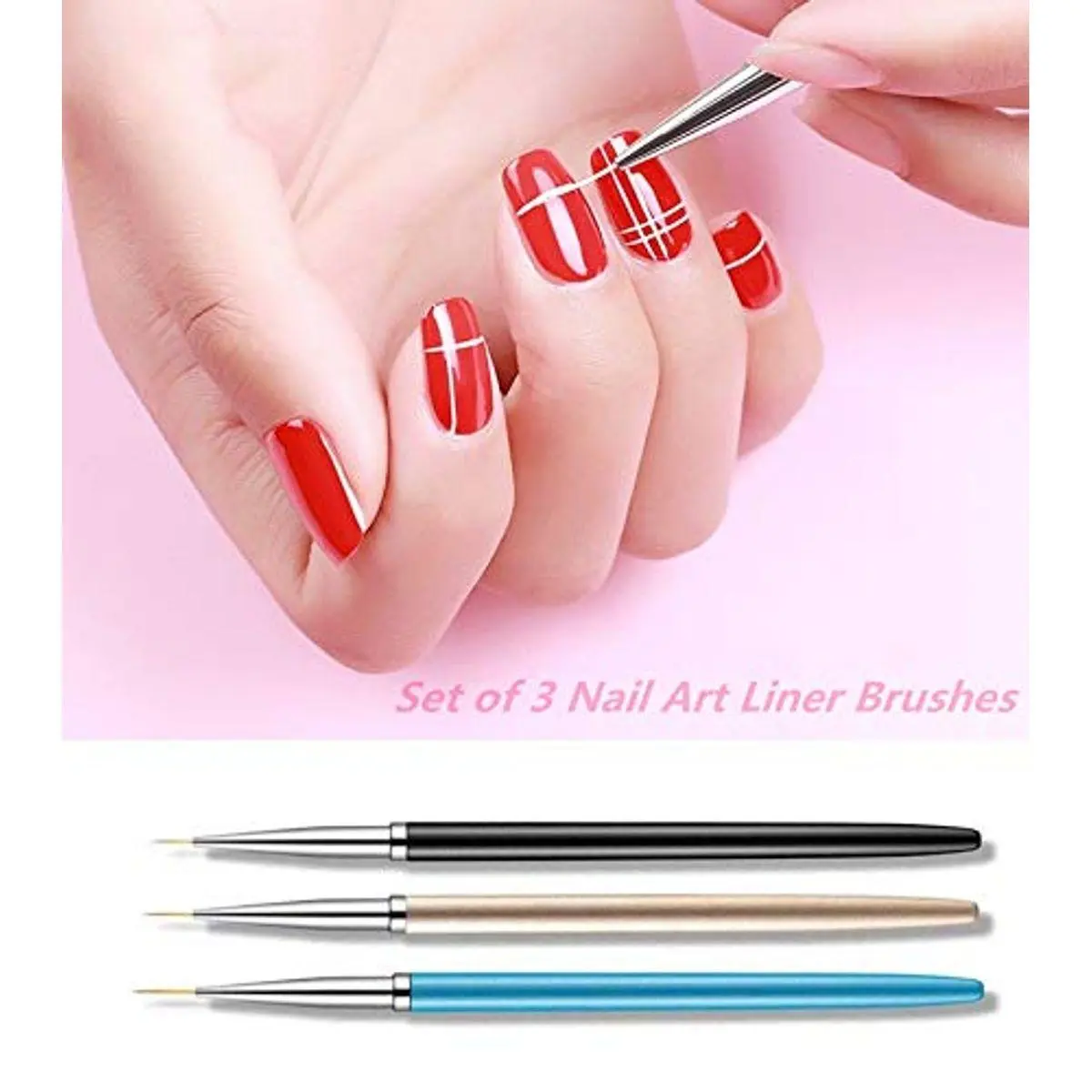 【3Pcs/Set Nail Brushes】 Includes 3PCS Nail Liner brushes. Sizes for Nail liner brushes heads: 7mm, 9mm and 11mm. Great nail brush set for drawing nail liners and patterns, making your nails more beautiful and charming.