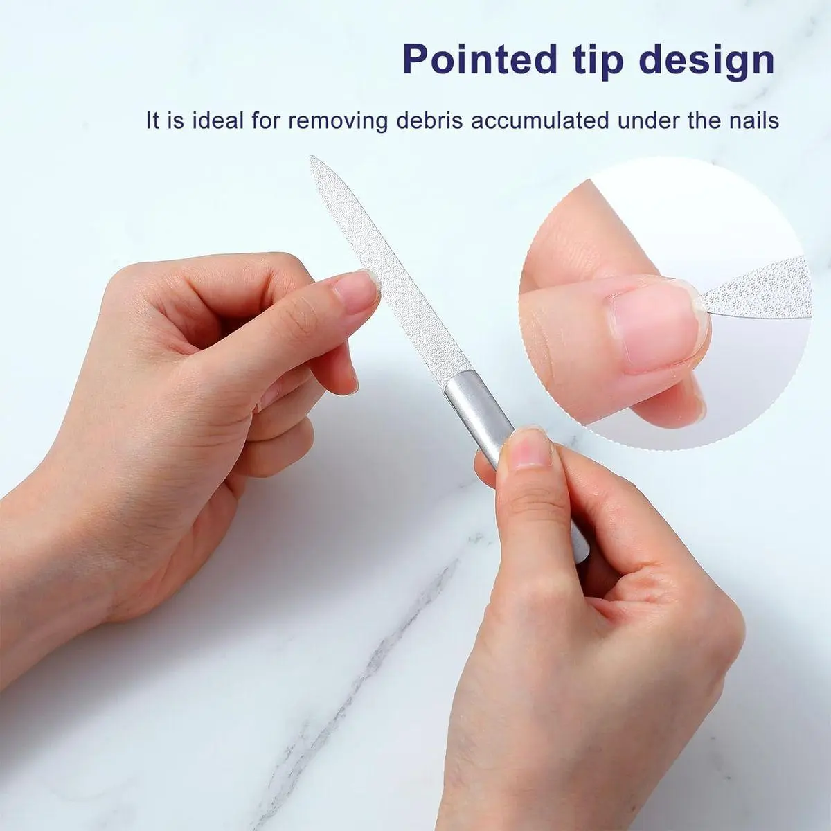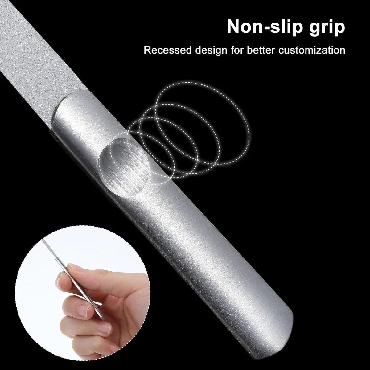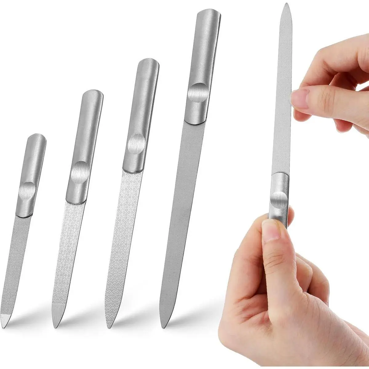 Reusable Metal Nail Files for Regular Maintenance:Made from durable stainless steel, these double-sided fingernail files are designed for repeated use in personal grooming routines and nail care sessions.