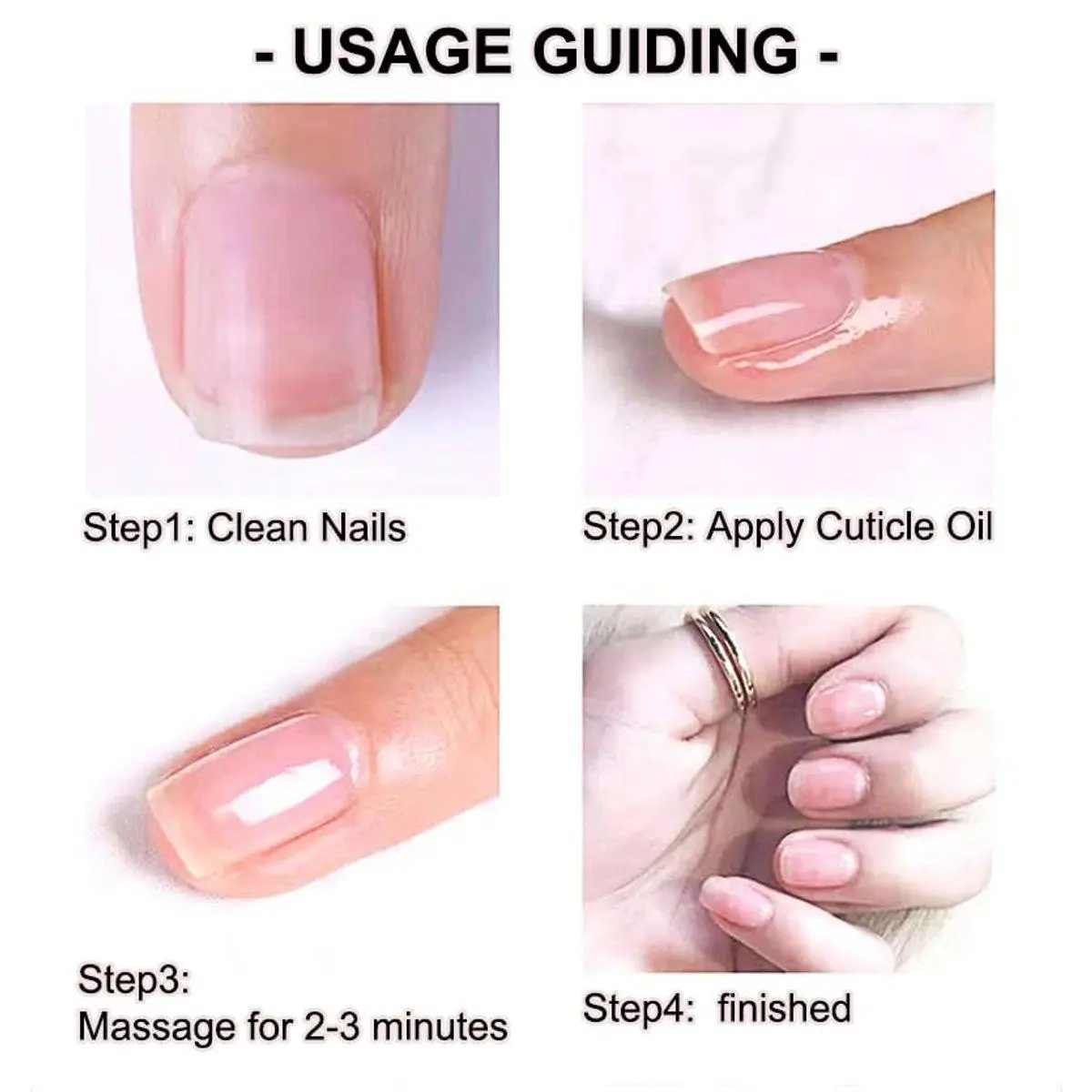 【Easy To Use】Cuticle oil can improve these problems: moisturize cuticles and nails, smooth out thorns, and soften dead skin. Recommended to follow the 15 minute daily and 7-day cycle care steps: Step 1: The cuticle oil is smooth and penetrates rough areas to obtain nourishment; Step 2: After fifteen minutes, the nutritional oil components are fully absorbed, and the peeling and prickling are softened; Step 3: Use continuously for more than seven days to soften nail problems.