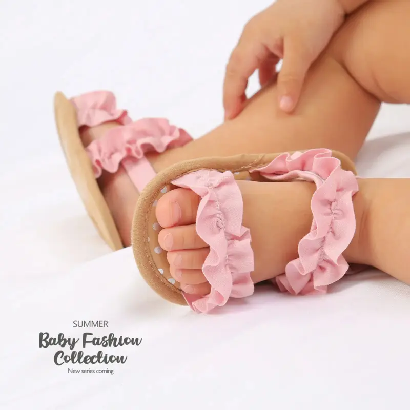 Baby girl summer sandals, non-slip soft-soled ruffle flats, toddler shoes