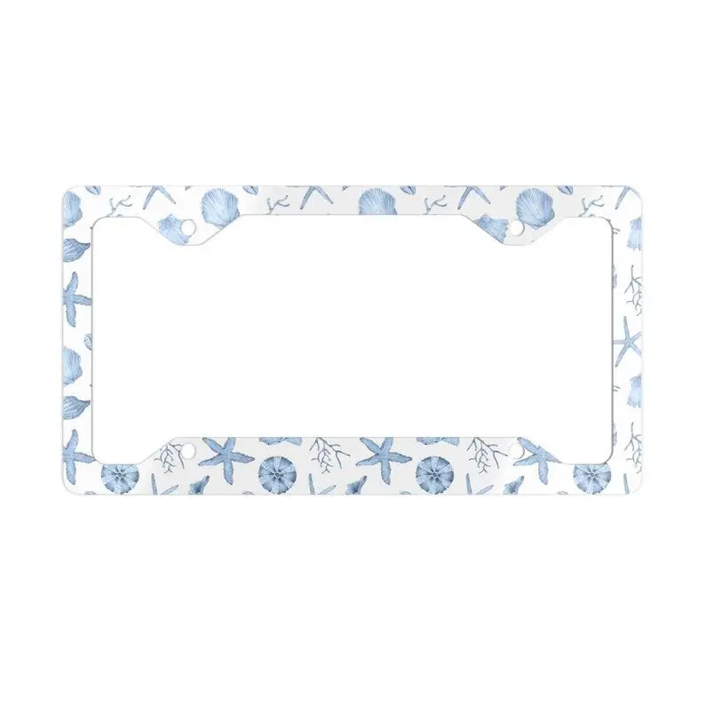 Blue White Seashells Ocean Aluminum Front License Plate Vanity Plate Car Accessories Gift For Her New Car Gifts Unique Gift for New Drivers