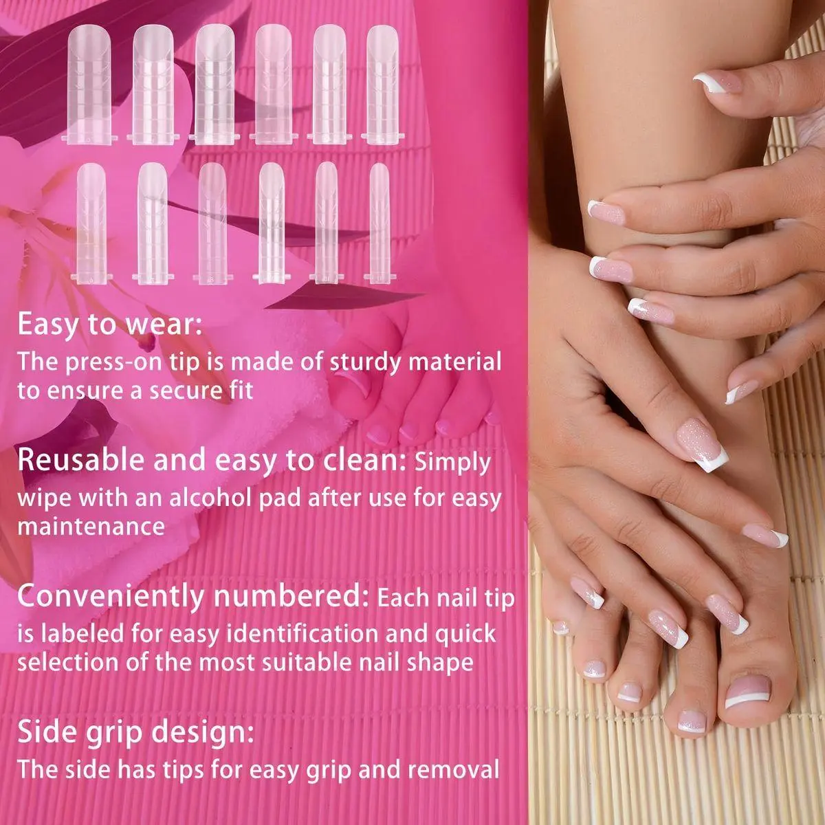 Easy to Use: Just apply the acrylic/polymer gel to the mold, press it on the nail and let it solidify. The mold can be peeled off cleanly after drying, leaving a perfectly shaped nail.