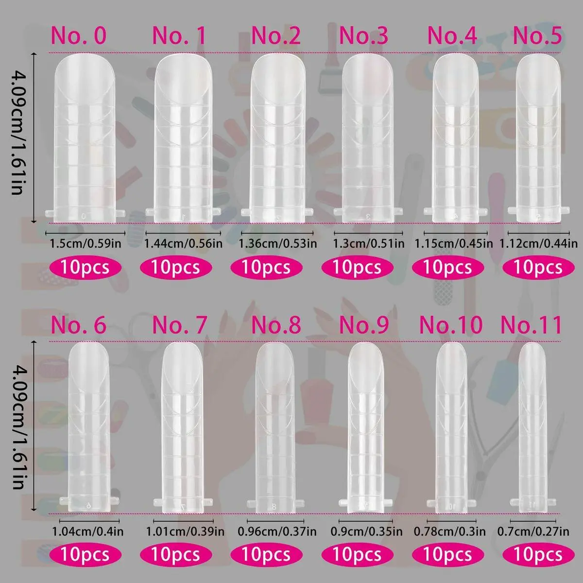 Product Features: Each nail is numbered and preset lines, which can quickly determine the required size and length. The side is designed with a tip that is easy to grasp and detach, bringing you great convenience.