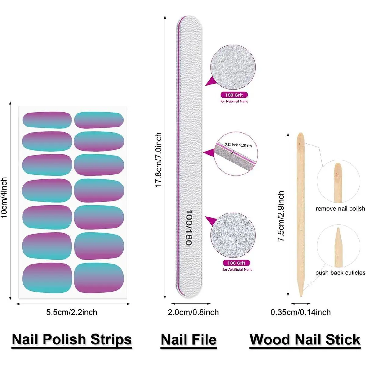 [Quality & Durable] Our nail strips polish made of quality material, safe and odorless, bringing no hurt to your nails, also the full nail strips is durable, not easy to bubble and DON'T REQUIRED UV LIGHT.
