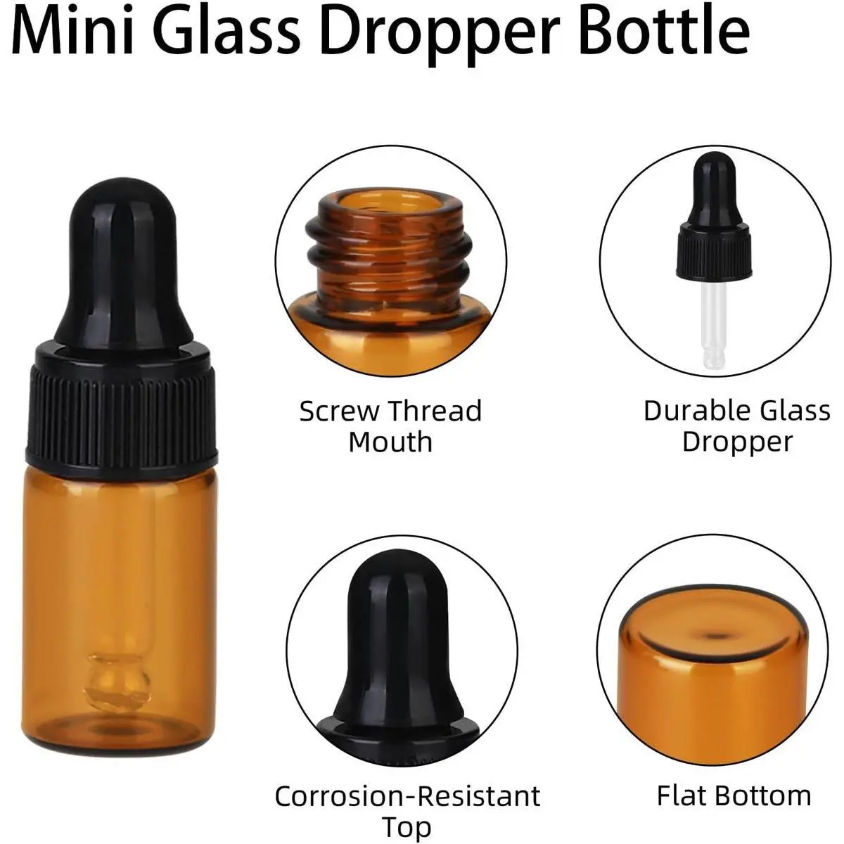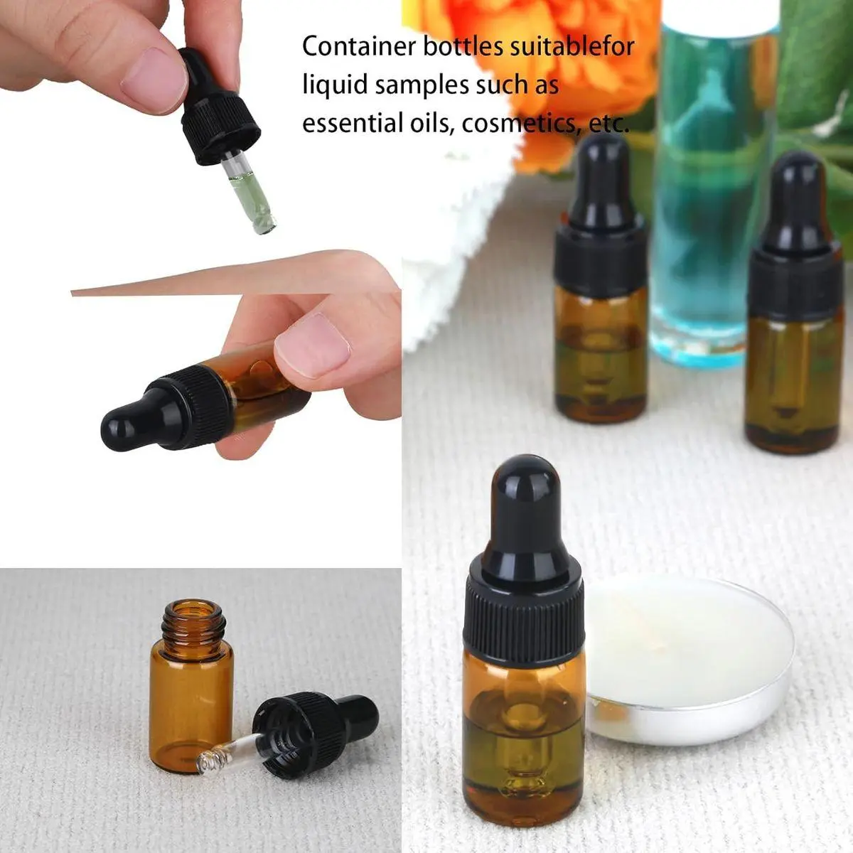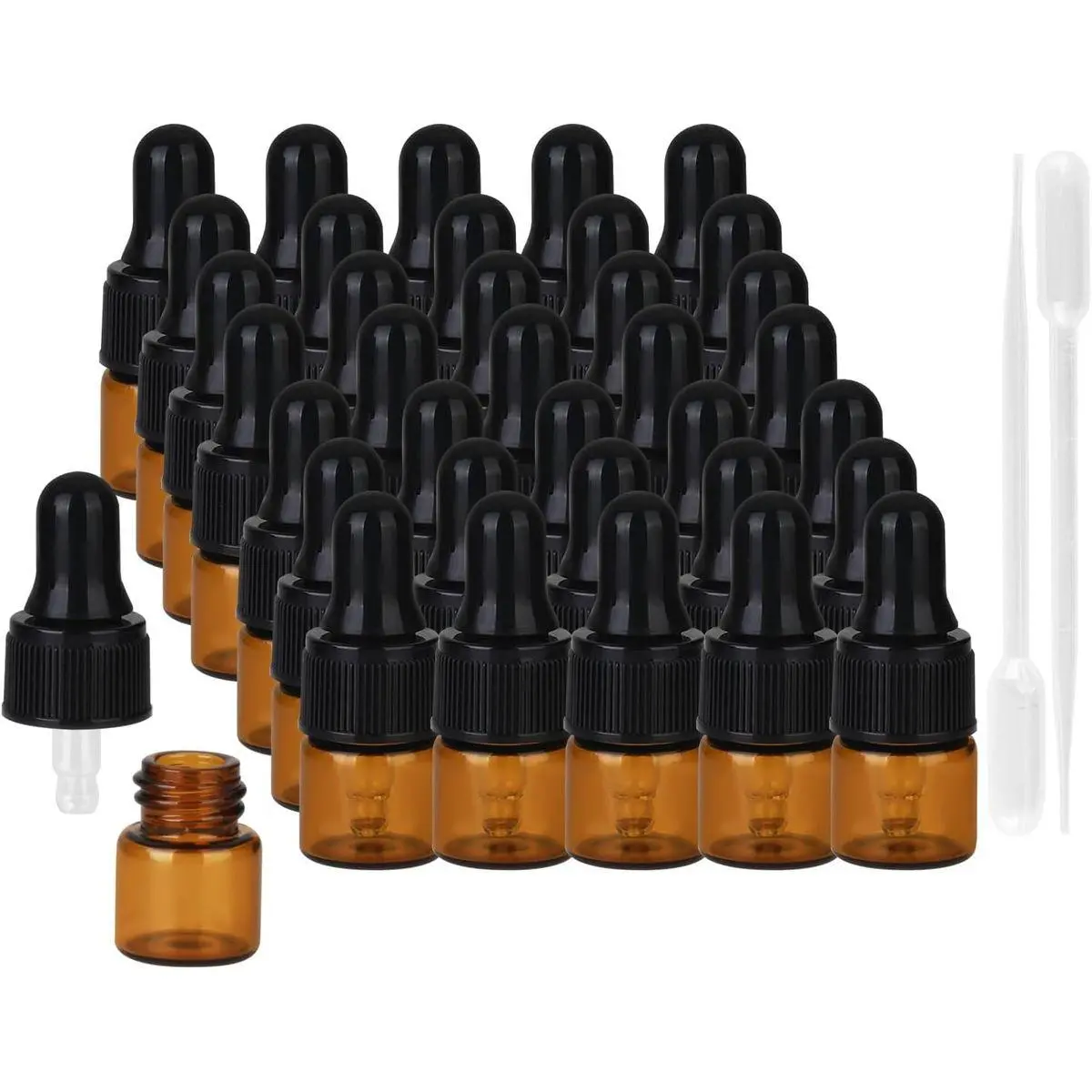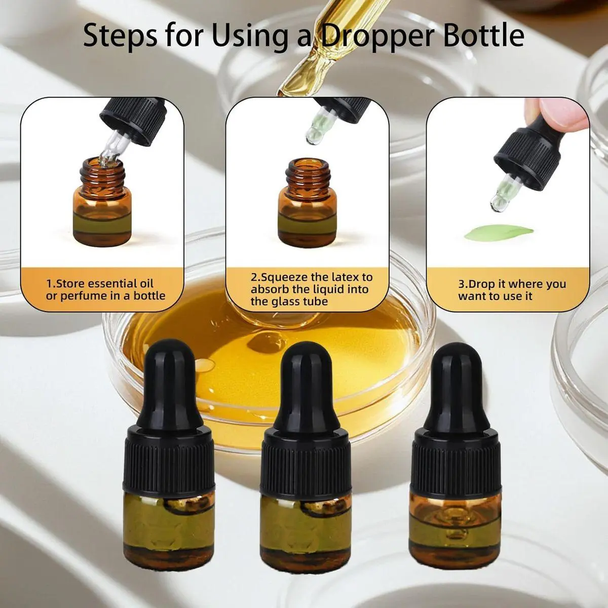 Package Contents: 36 x 1ml Amber dropper bottles (with gold caps and white rubber dropper tips); 2 x plastic droppers. The glass bottle with dropper design facilitates precise dispensing of essential oils, perfumes, or samples