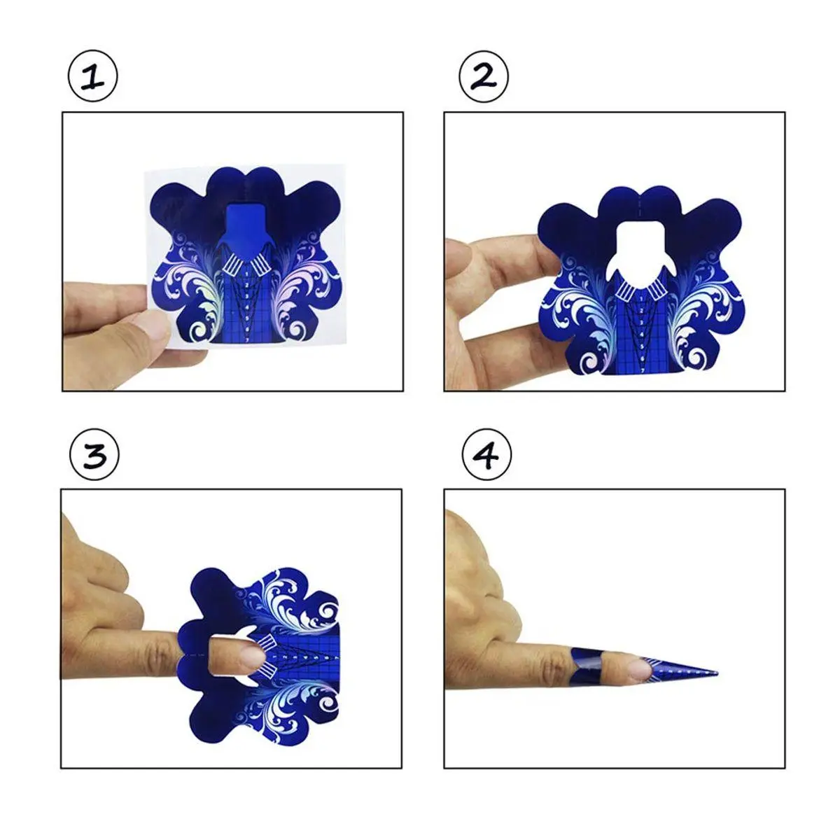 1 Roll =approximate 100 pcs Self-adhesive nail form stickers and each pcs size 70x65mm
