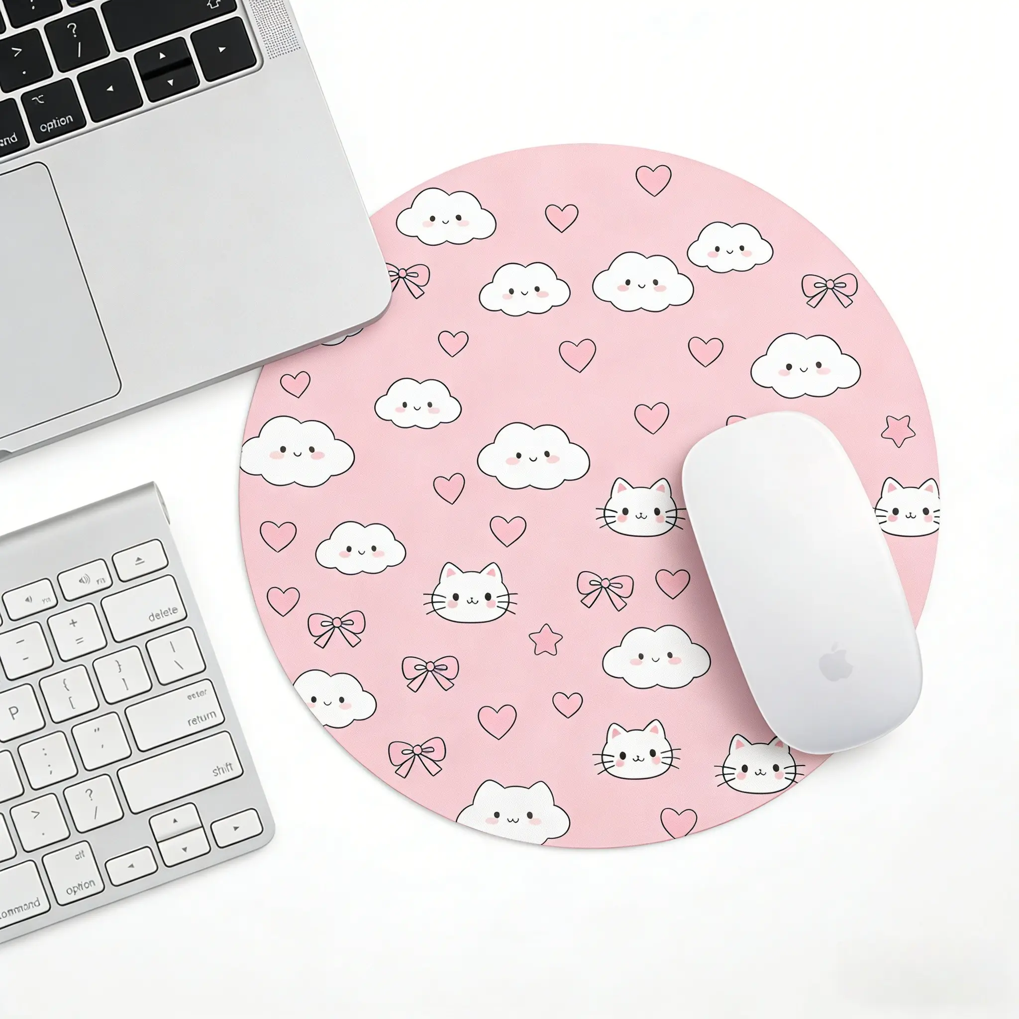 Fashion Cloud Round Mouse Pad, Anti-Slip Rubber Base, Gaming Mouse Pad, Office Desk Mat, Gift for Girls and Women, 7.87 Inches