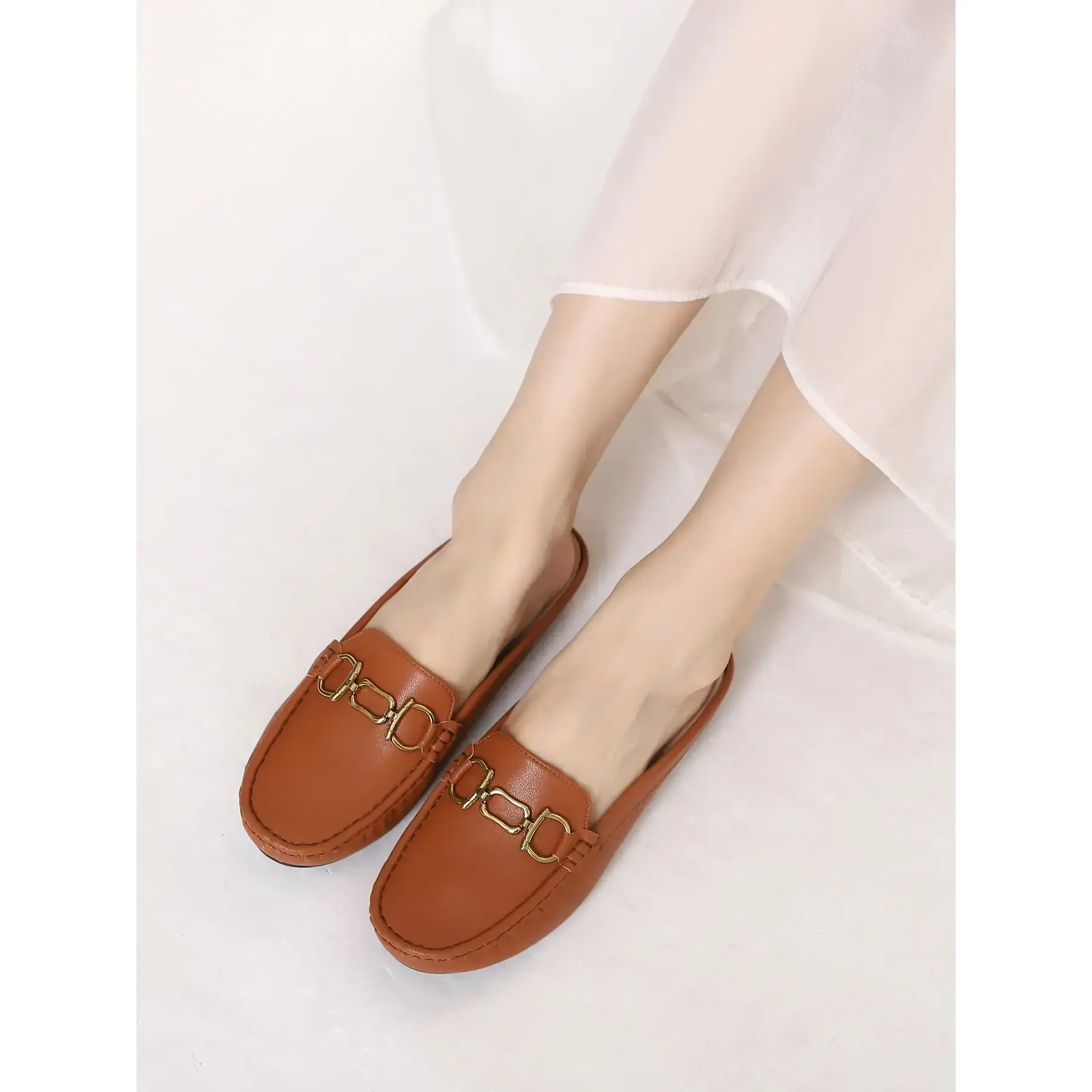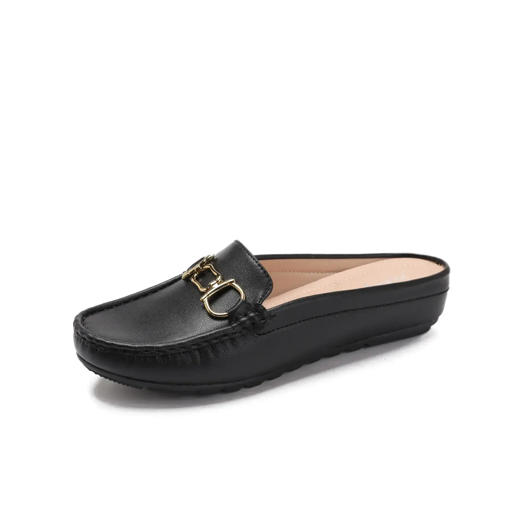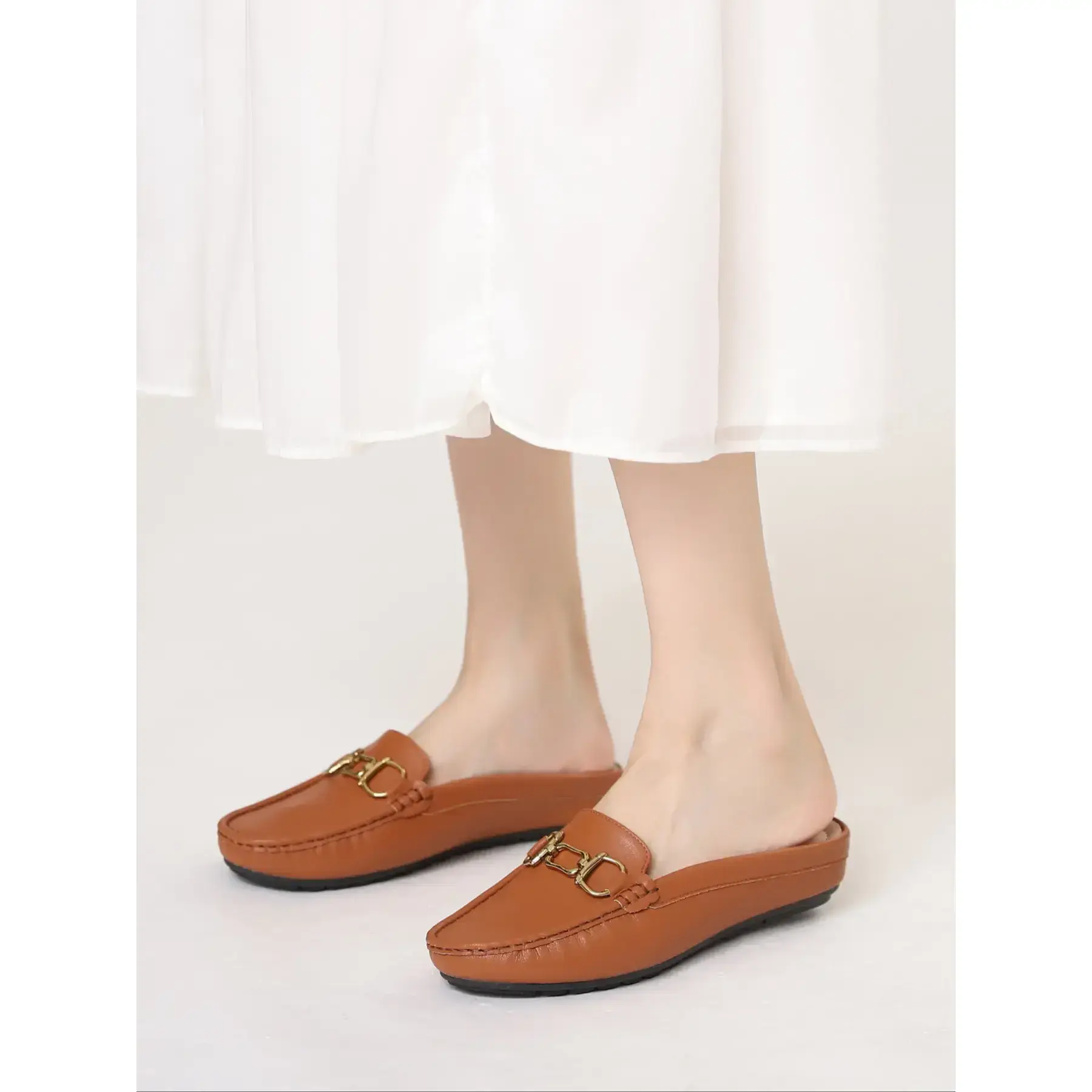 Women's Casual Slip-On Shoes, Soft Leather Outdoor Sandals, All-Season Comfortable Footwear, New Style Single Shoe Design, Slip On Mules