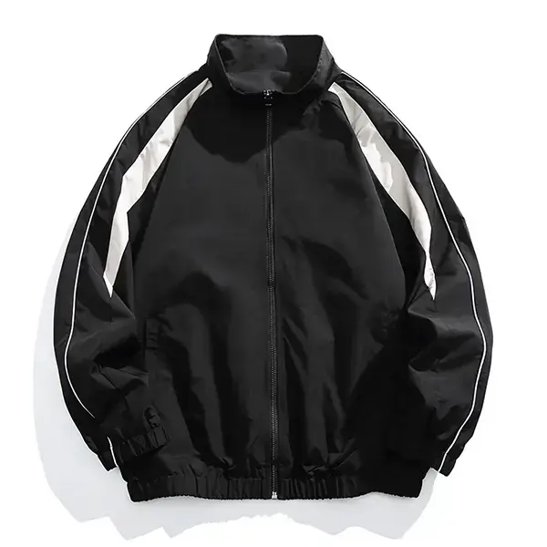 Men's Black & White Striped Sports Jacket This men's black and white striped sports jacket will elevate your activewear!This jacket features a zipper closure to ensure secure and stylish fit. Its lightweight design makes it perfect for casual outings or sports activities. Vintage casual sporty pieces add uniqueness to your wardrobe. This jacket is a versatile addition to your wardrobe, combining practicality with a unique look. Suitable for those who seek both style and practicality.