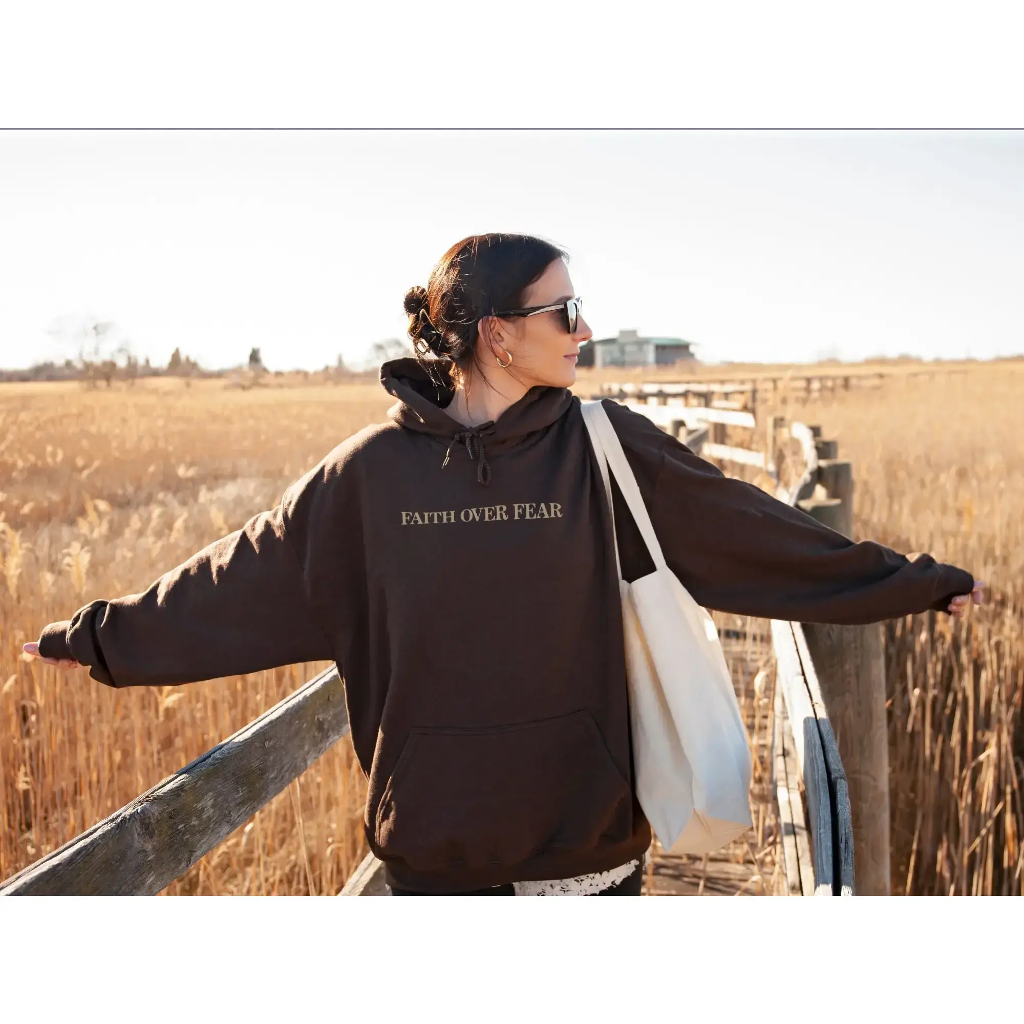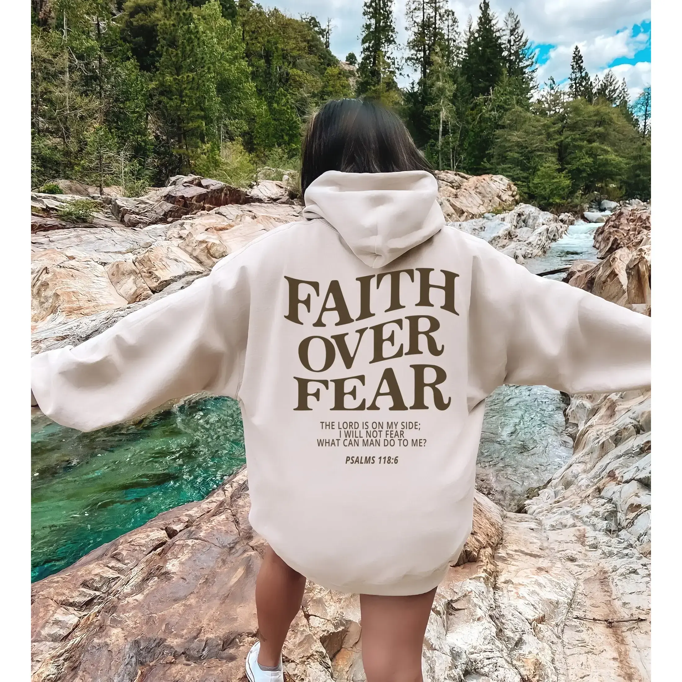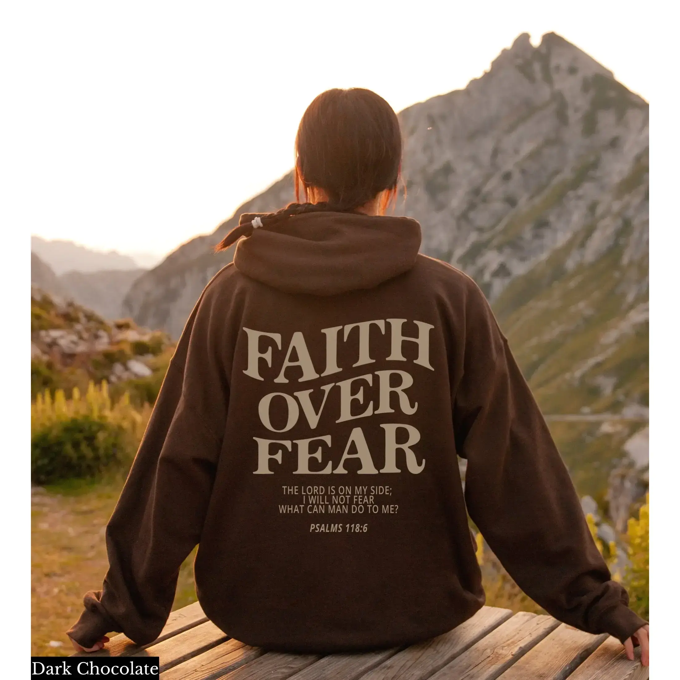 Faith conquers fear, Christian hoodies, Christian sports shirts, Jesus hoodies, fashion hoodies, Bible scripture shirts, aesthetic clothing, aesthetic hoodies, T-shirts, and sweaters, double-sidedRAIMENTRY