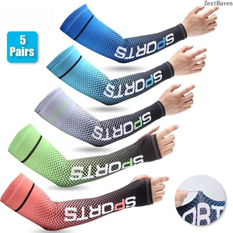 UV Protection Arm Sleeves 5 Pairs Cooling Breathable Sun Covers for Running Cycling Driving