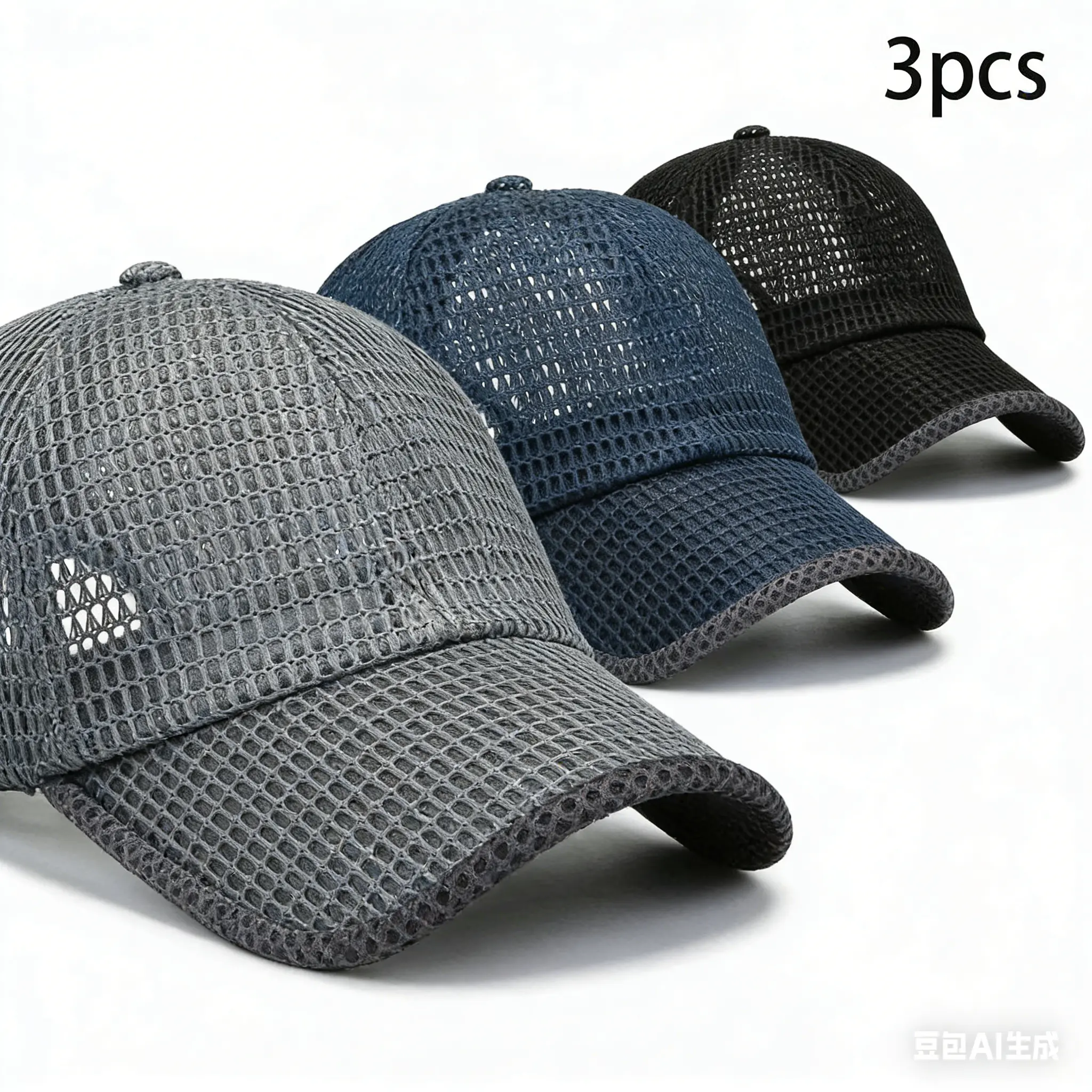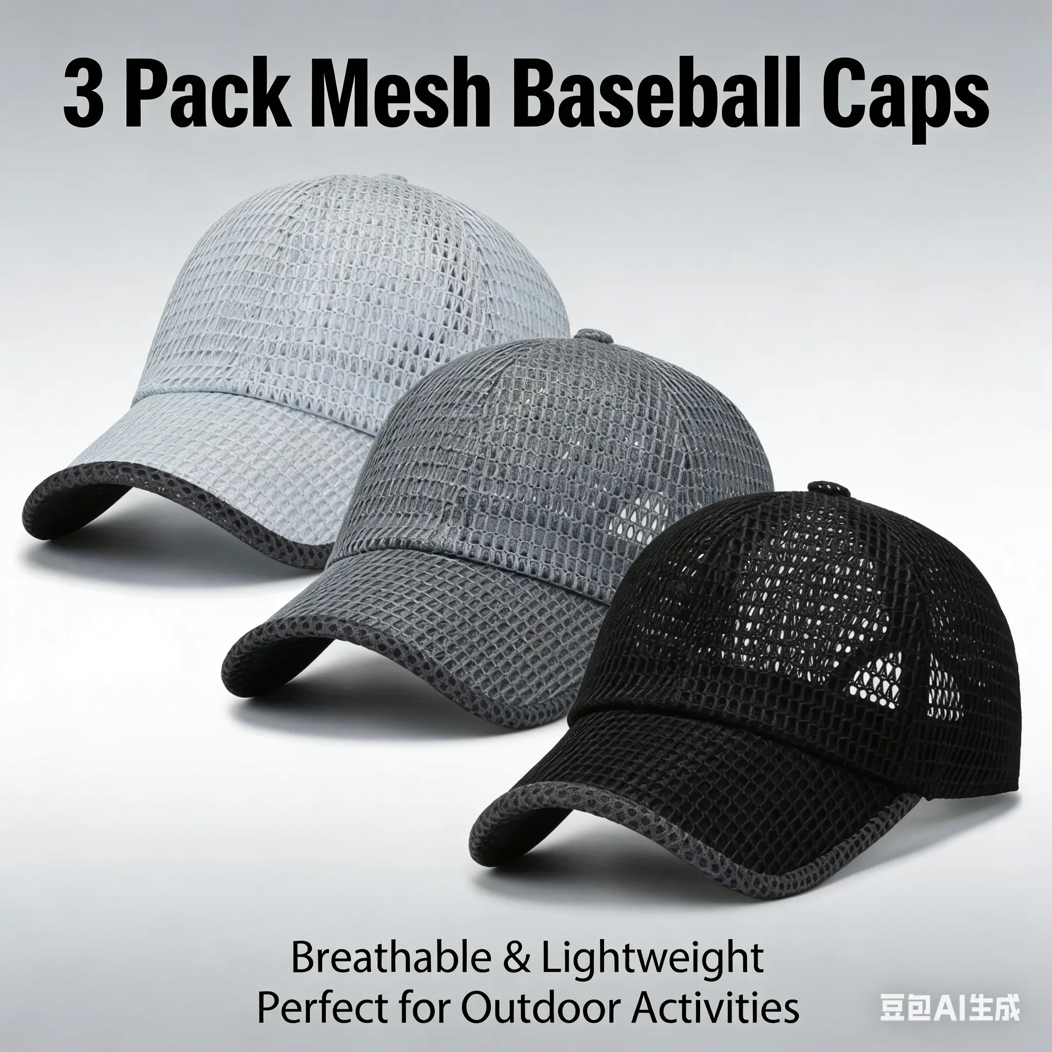 3Pcs Breathable Mesh Baseball CapsTrending Gorpcore Aesthetic Full Mesh Quick-Dry Sun Hats Adjustable Lightweight UV Protection Hats for Summer Outdoor Workout Running Golf Fishing
