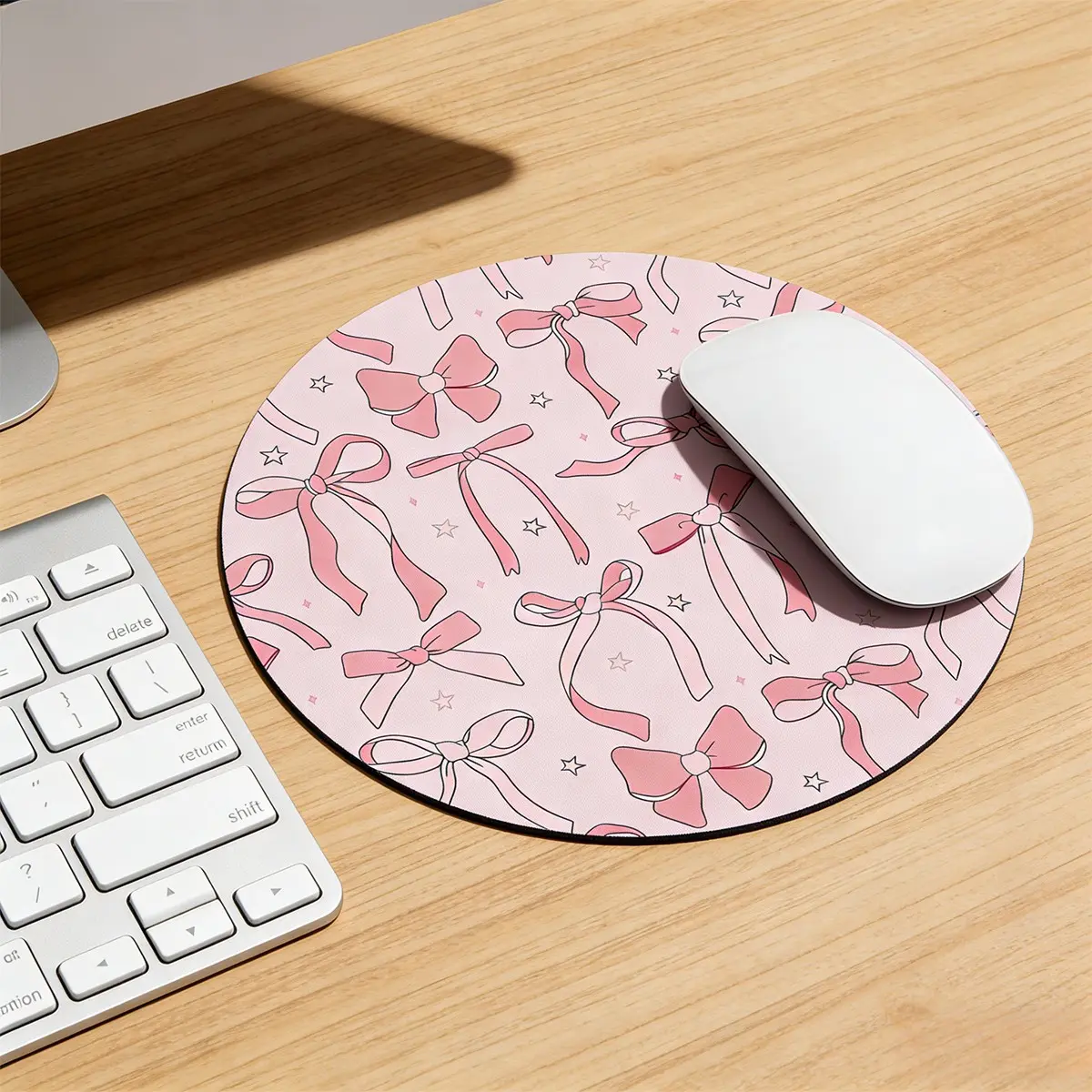 Fashion Butterfly Knot Round Mouse Pad, Non-Slip Rubber Base, Small Desktop Mat for PC/laptop, Gaming/mouse Pad, Gift for Women - 7.87 Inches