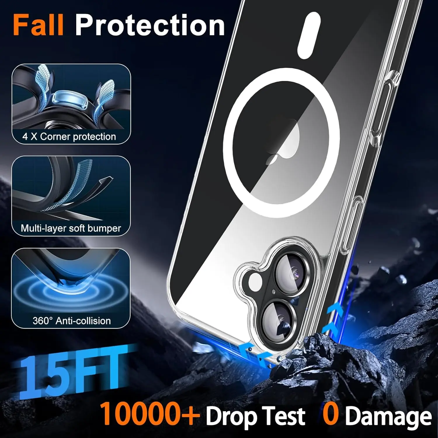 for iPhone 17 Case Clear, Magnetic iPhone 17 Case with Privacy Screen Protector Compatible with MagSafe Shockproof Slim Phone Case for 17 Cover, Transparent.