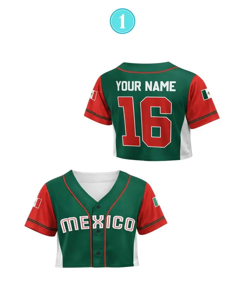 Mexico Flag Baseball Crop Top Women Button Up Jersey Custom Name number Sport Shirt
