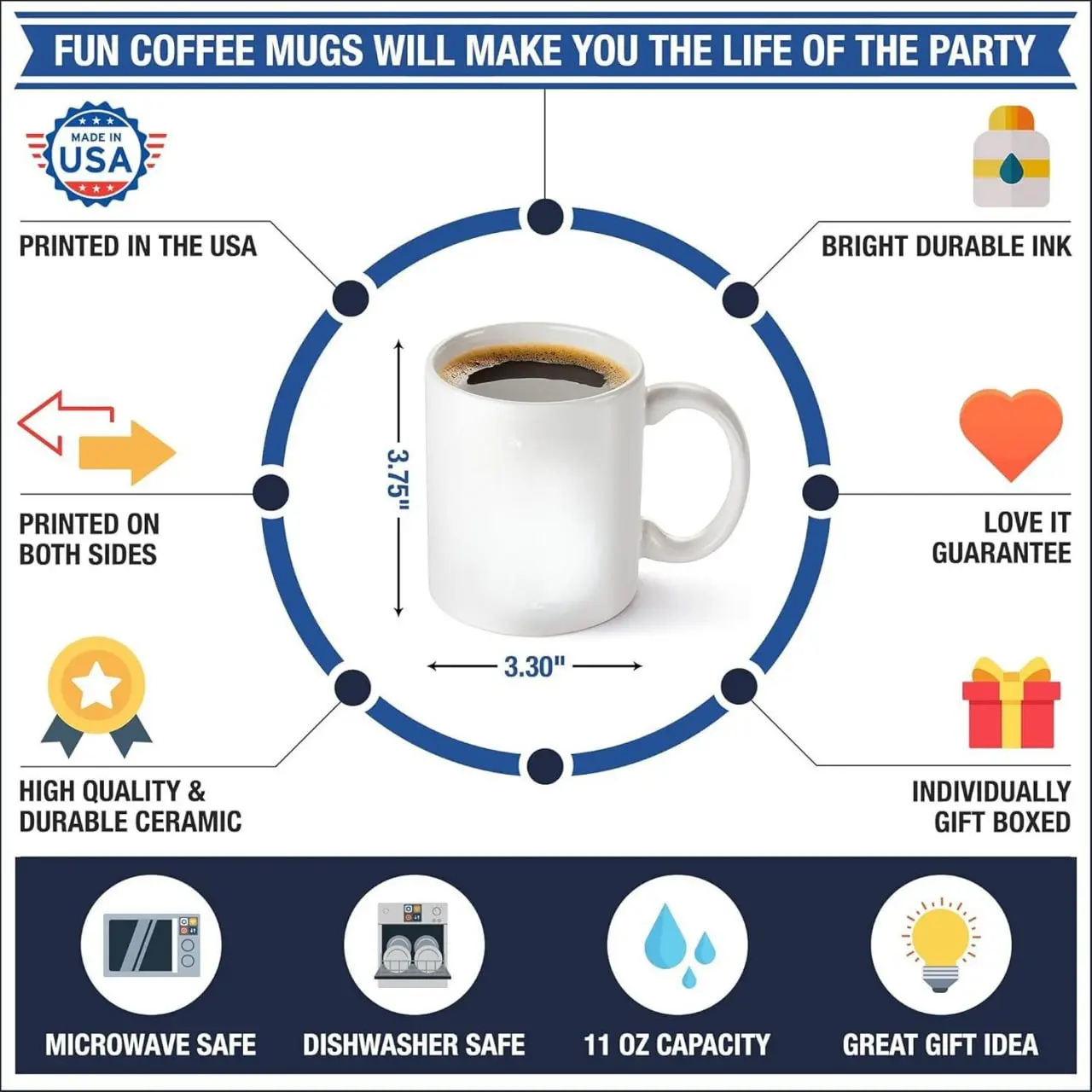 Ideal for daily coffee, tea, or cocoa, this ceramic mug adds fun to your routine. Choose the 11 oz for your daily dose or the 15 oz for a caffeine boost. Both sizes feature a glossy finish and smooth rim. Printed in the USA, it's dishwasher & microwave safe for daily use.