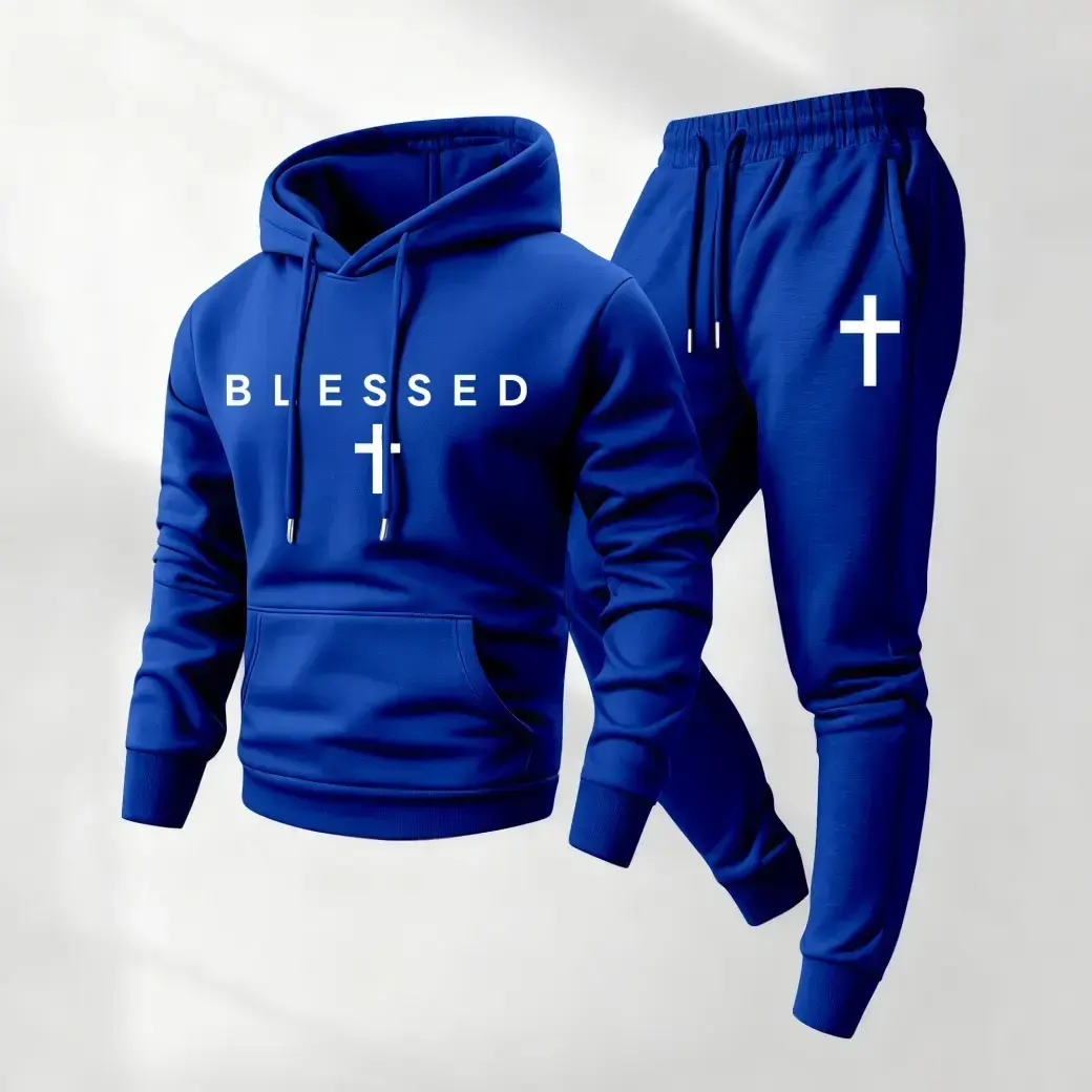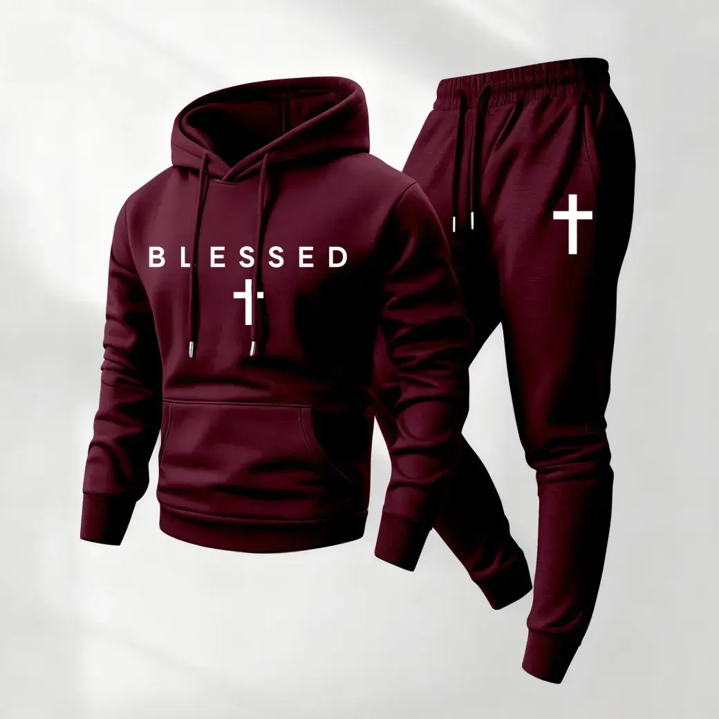 Men's Blessing Printed Hoodie and Rope Sports Trousers Set, Men's Dress, Casual Sports Long-Sleeved Hooded Jacket and trousers, Suitable for autumn and winter, Men's Daily Wear, Outdoor Sportswear, Sportswear, Sportswear, Casual Summer ClothingRAIMENTRY