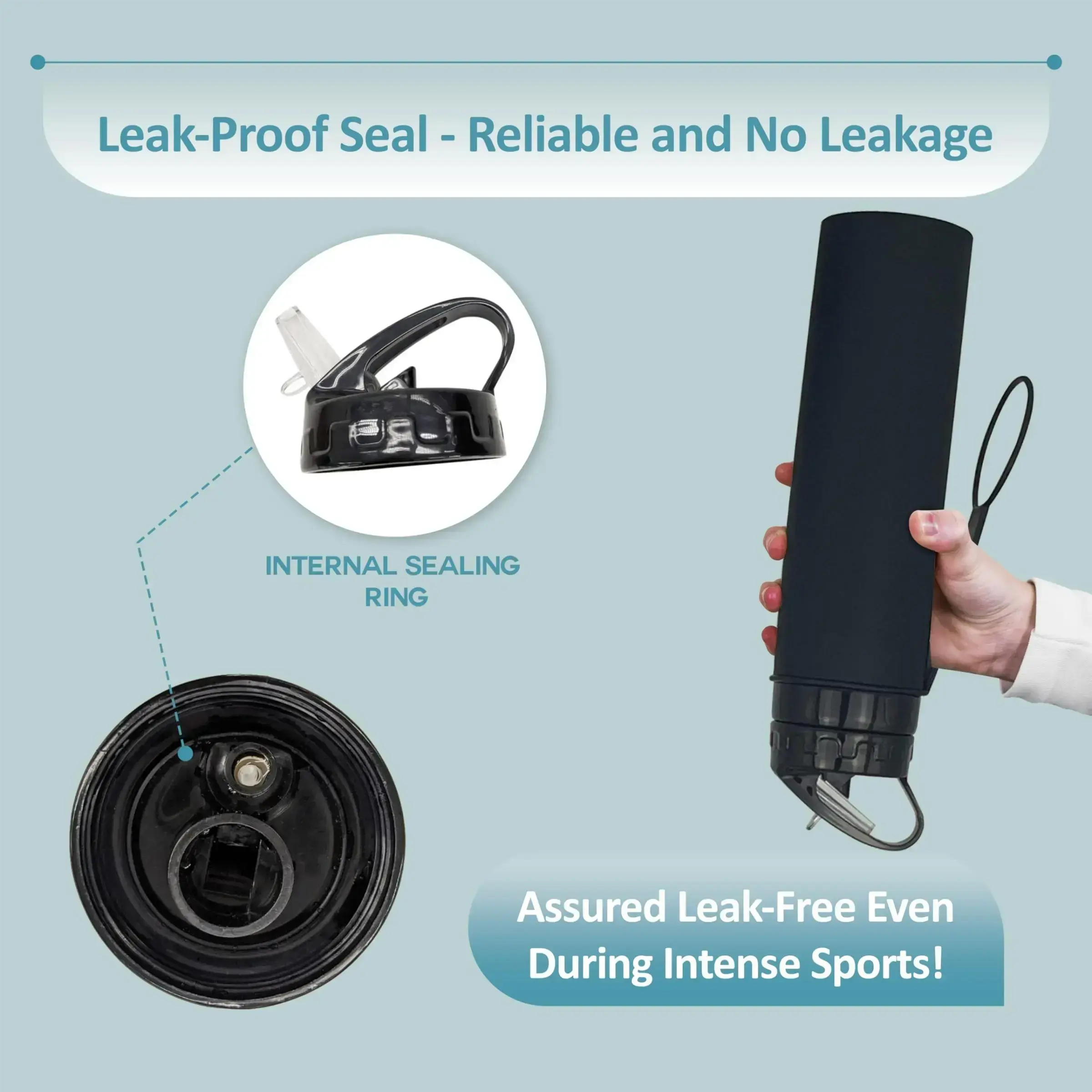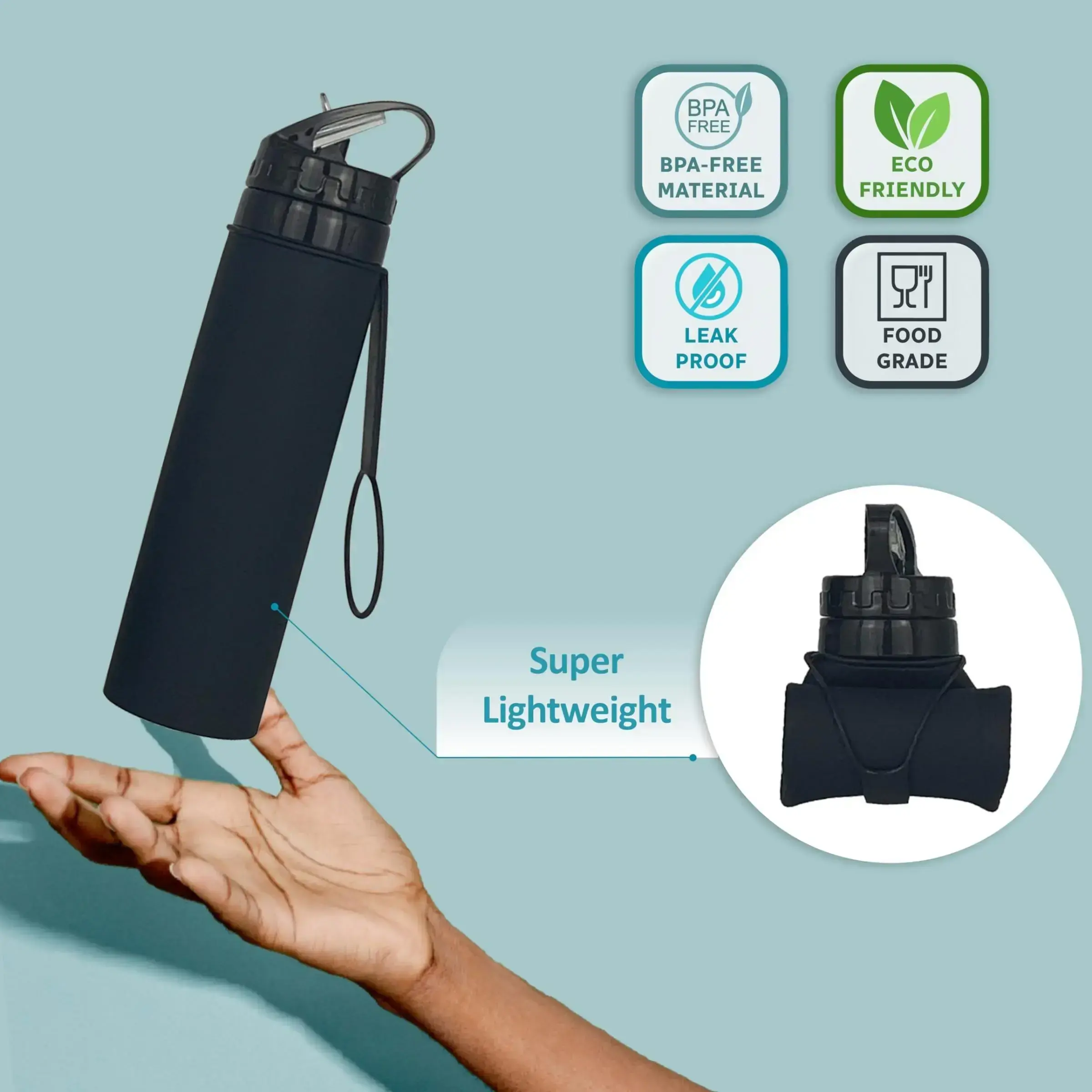 Foldable water bottle, 600ML silicone travel water bottle with straw leak proof, cycling, hiking and outdoor sports water bottle, moisturizing bottle